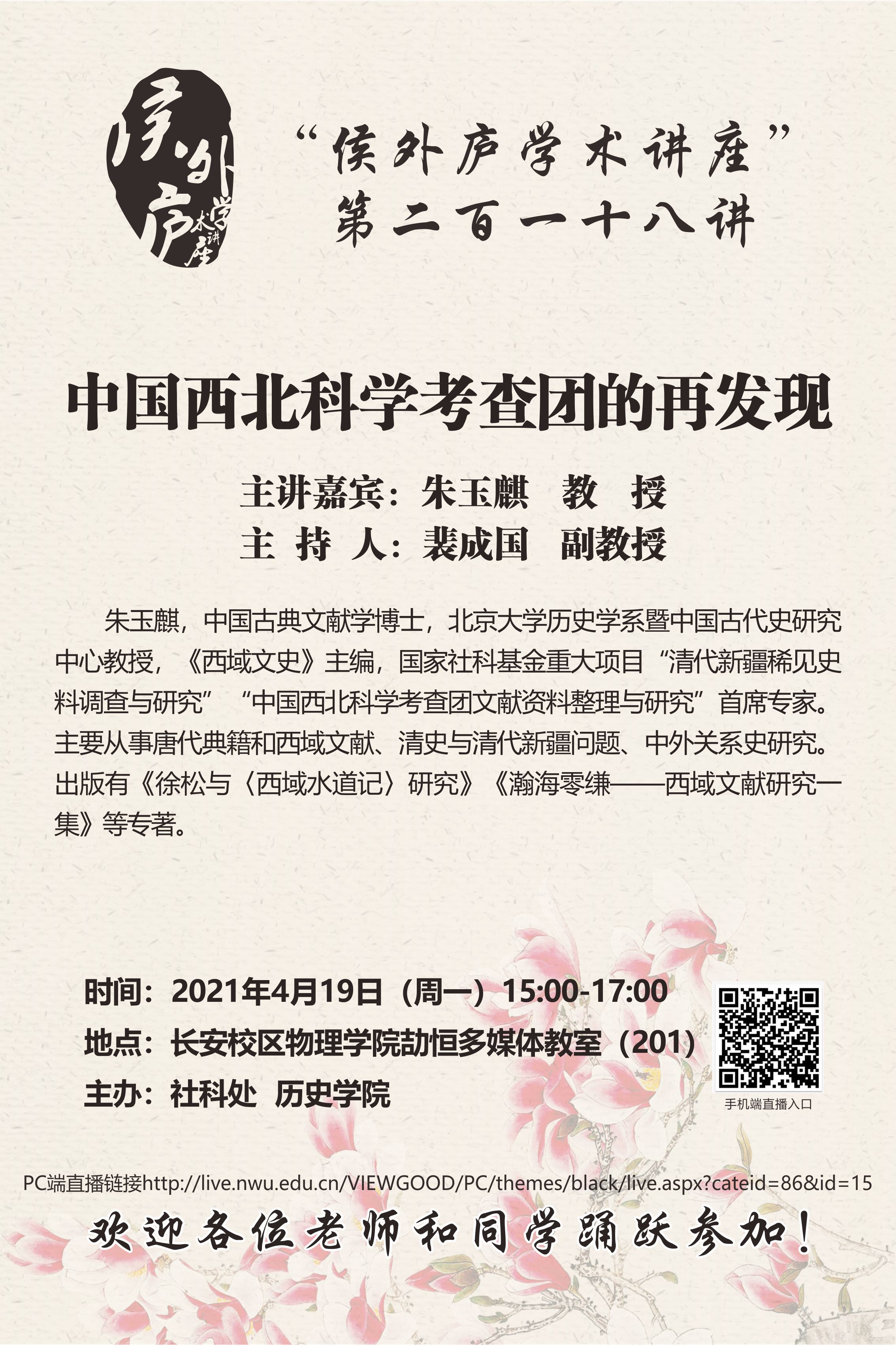 侯外庐学术讲座第二百一十八讲:中国西北科学考察团的再发现