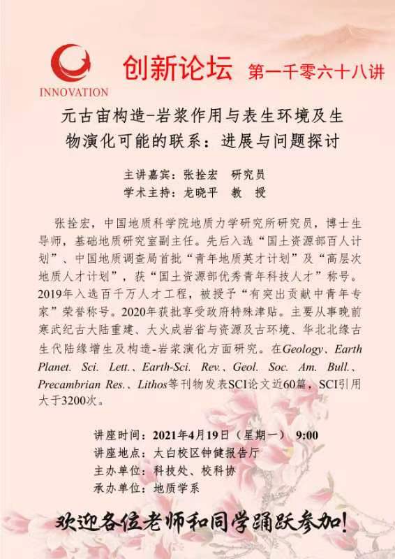 张拴宏 研究员 欧冠官方网站创新论坛第一千零六十八讲:元古宙构造-岩浆作用与表生环境及生物演化可能的联系:进展与问题探讨 讲座时间 2021年4月19日(星期一) 9:00 讲座地点 太白校区钟健报告厅 讲座人介绍 张拴宏 研究员 讲座内容