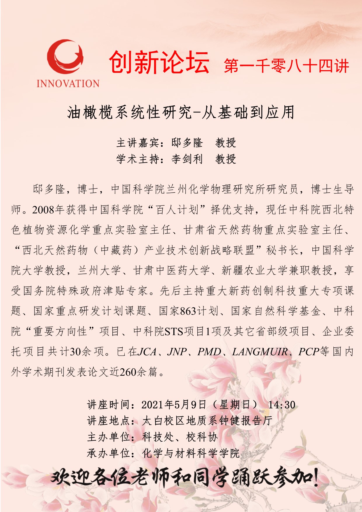 邸多隆 教授 欧冠官方网站创新论坛第一千零八十四讲:油橄榄系统性研究-从基础到应用 讲座时间 2021年5月9日(星期日) 14:30 讲座地点 太白校区地质系钟健报告厅 讲座人介绍 邸多隆 教授 讲座内容