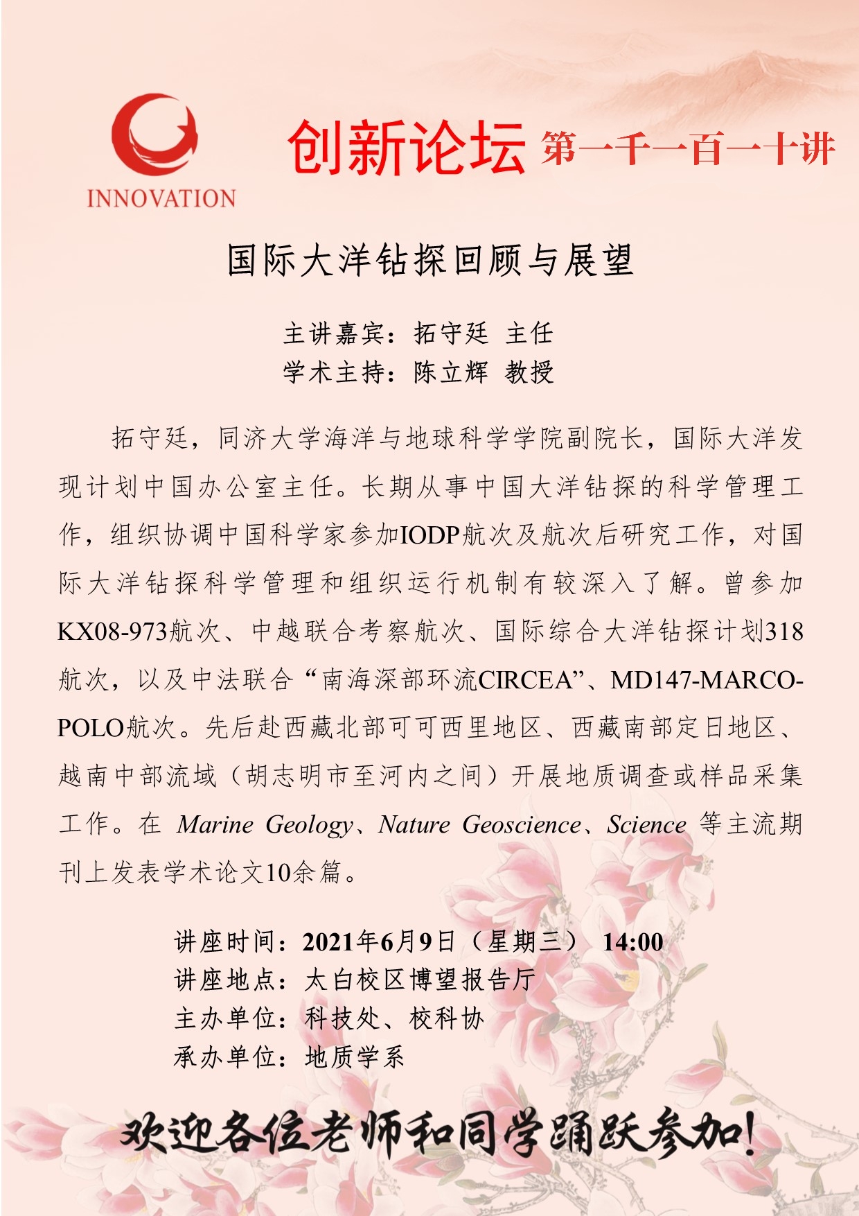 欧冠官方网站创新论坛第一千一百一十讲:国际大洋钻探回顾与展望