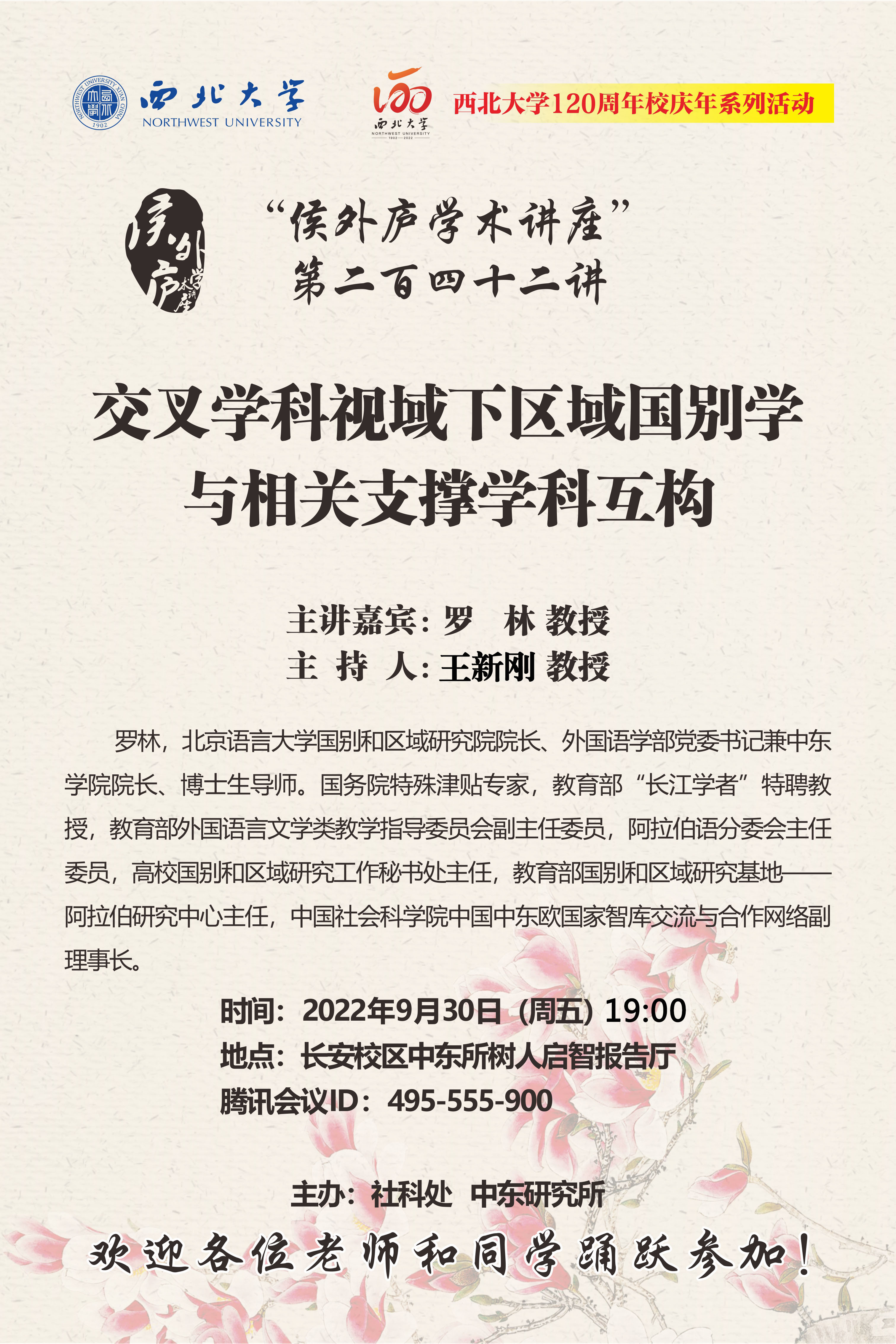 侯外庐学术讲座第二百四十二讲暨120周年校庆年系列活动:交叉学科视域下区域国别学与相关支撑学科互构