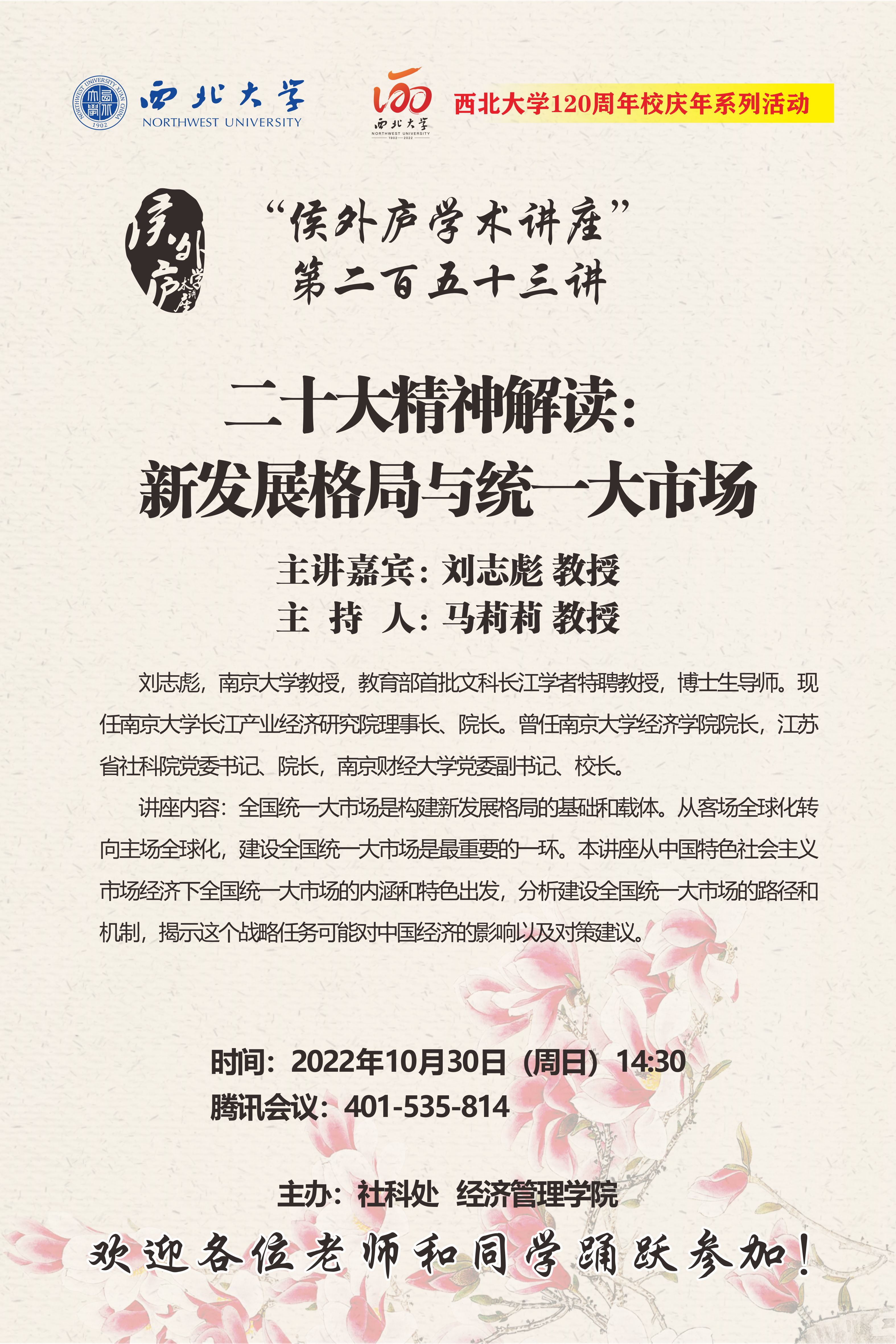 侯外庐学术讲座第二百五十三讲暨120周年校庆年系列活动:二十大精神解读:新发展格局与统一大市场