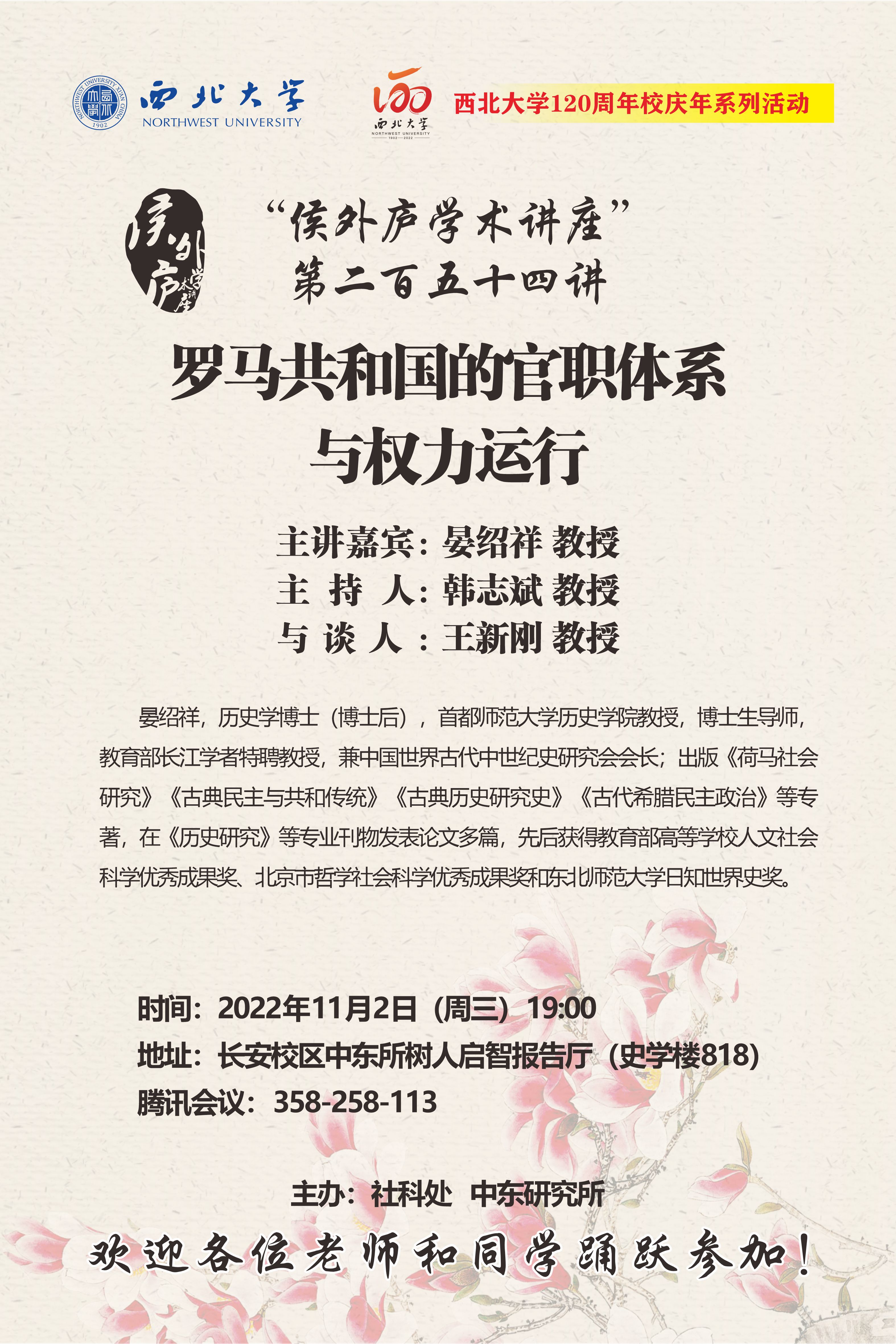 侯外庐学术讲座第二百五十四讲暨120周年校庆年系列活动:罗马共和国的官职体系与权力运行