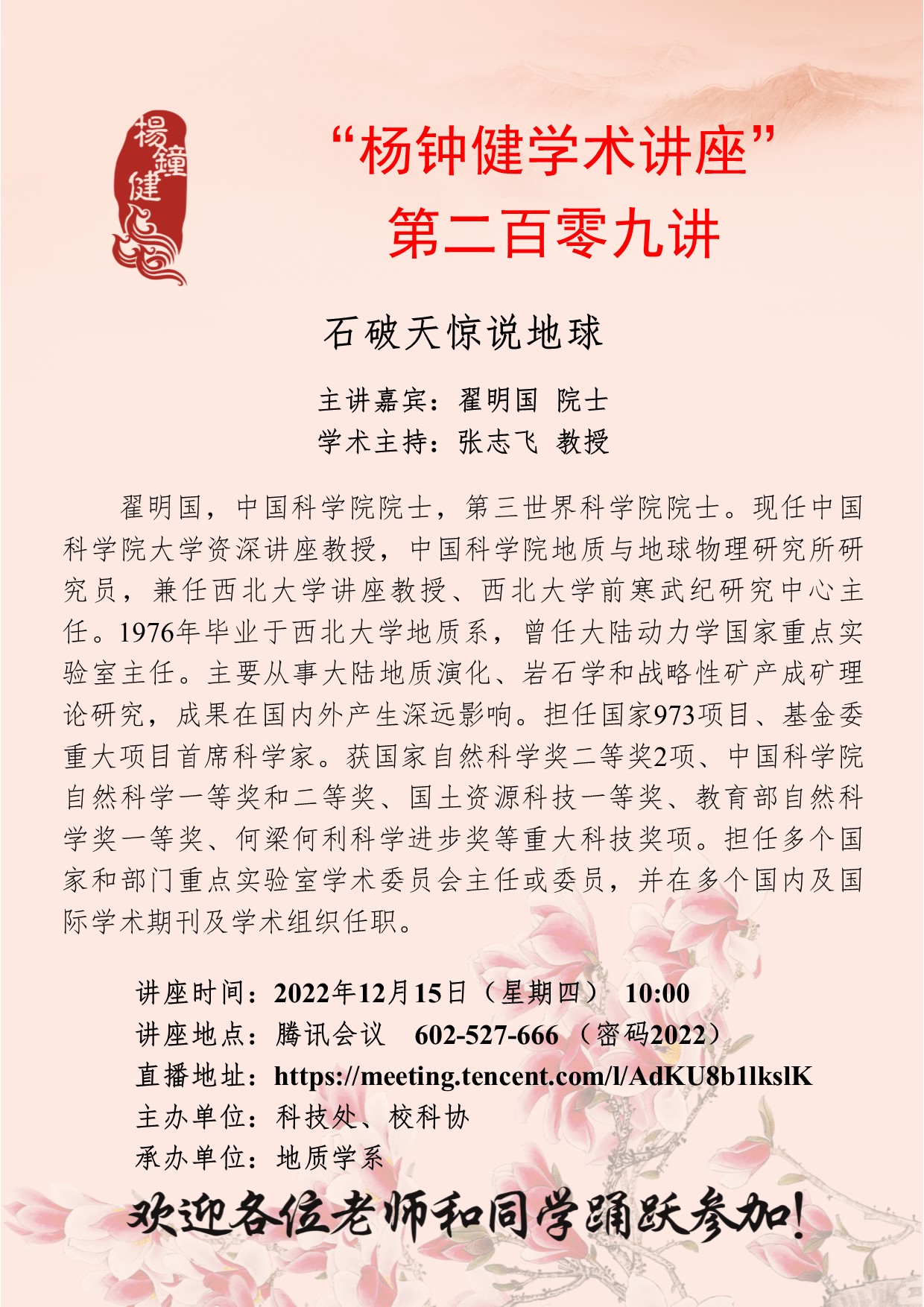 “杨钟健学术讲座”第二百零九讲:石破天惊说地球