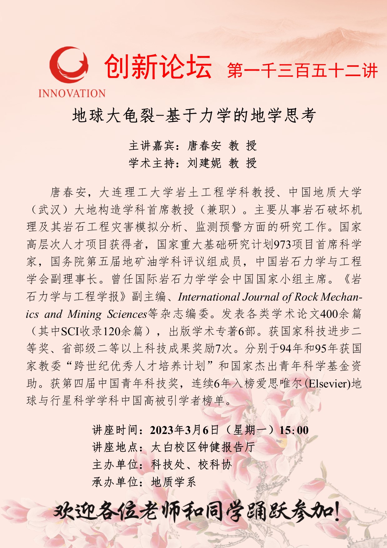 欧冠官方网站创新论坛第一千三百五十二讲:地球大龟裂-基于力学的地学思考