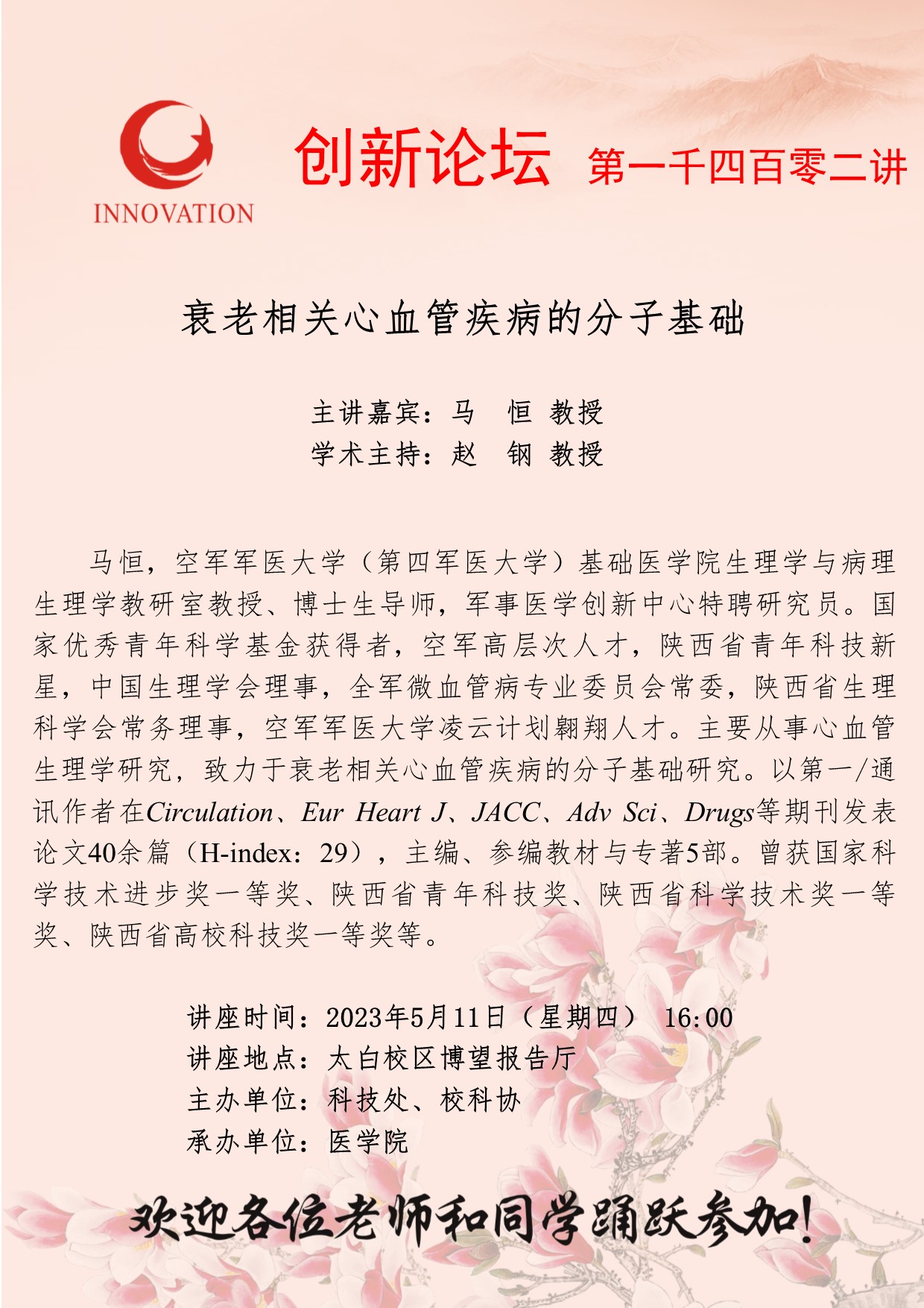 欧冠官方网站创新论坛第一千四百零二讲:衰老相关心血管疾病的分子基础