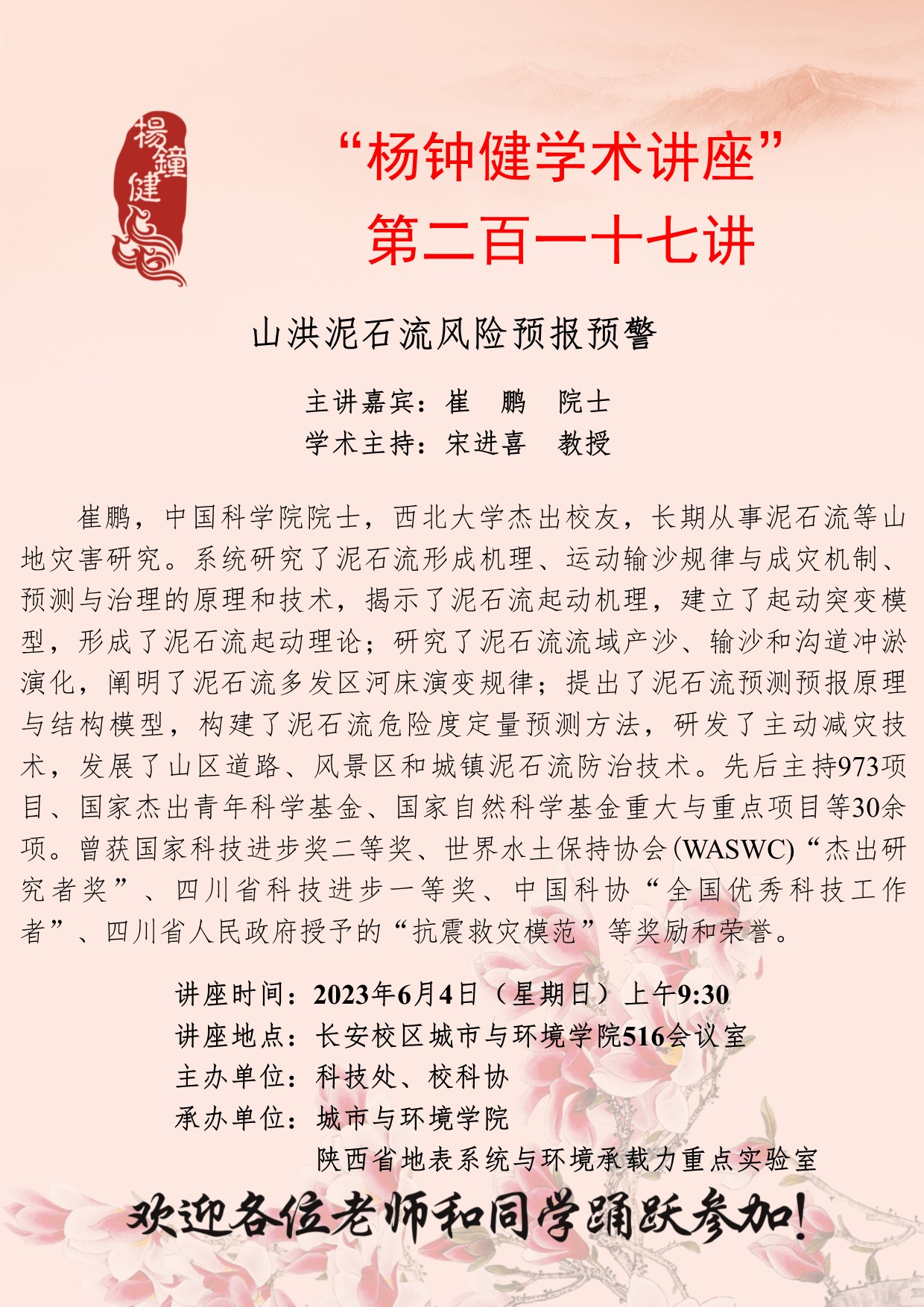 “杨钟健学术讲座”第二百一十七讲:山洪泥石流风险预报预警