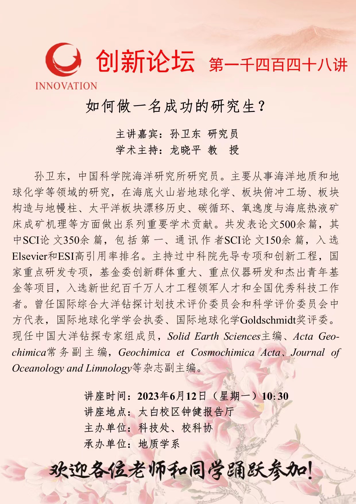 欧冠官方网站创新论坛第一千四百四十八讲:如何做一名成功的研究生?