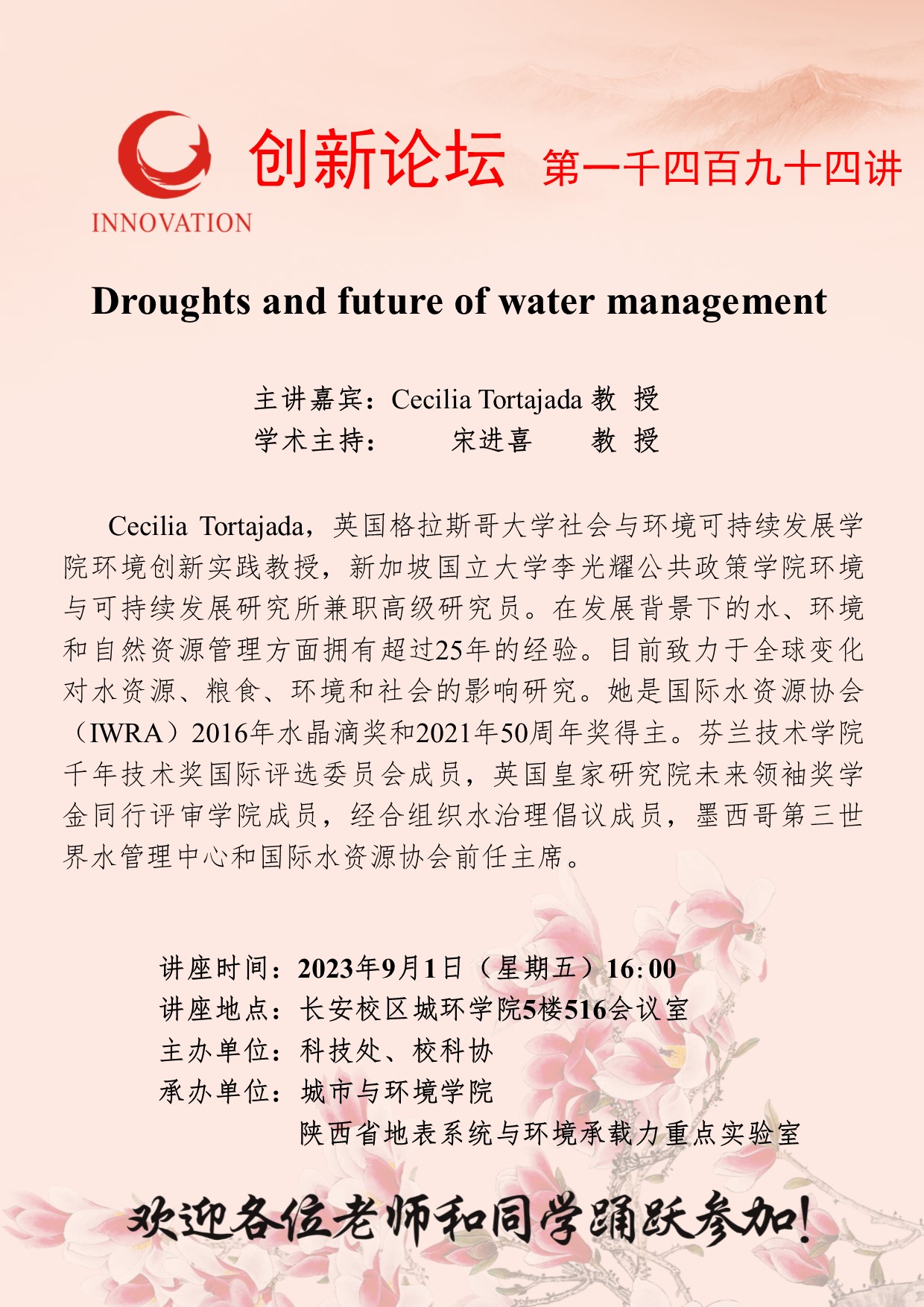 Cecilia Tortajada 教 授 欧冠官方网站创新论坛第一千四百九十四讲:Droughts and future of water management 讲座时间 2023年9月1日(星期五)16:00 讲座地点 长安校区城环学院5楼516会议室 讲座人介绍 Cecilia Tortajada 教 授 讲座内容