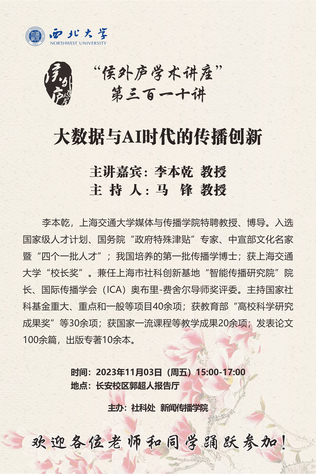 侯外庐学术讲座第三百一十讲:大数据与AI时代的传播创新