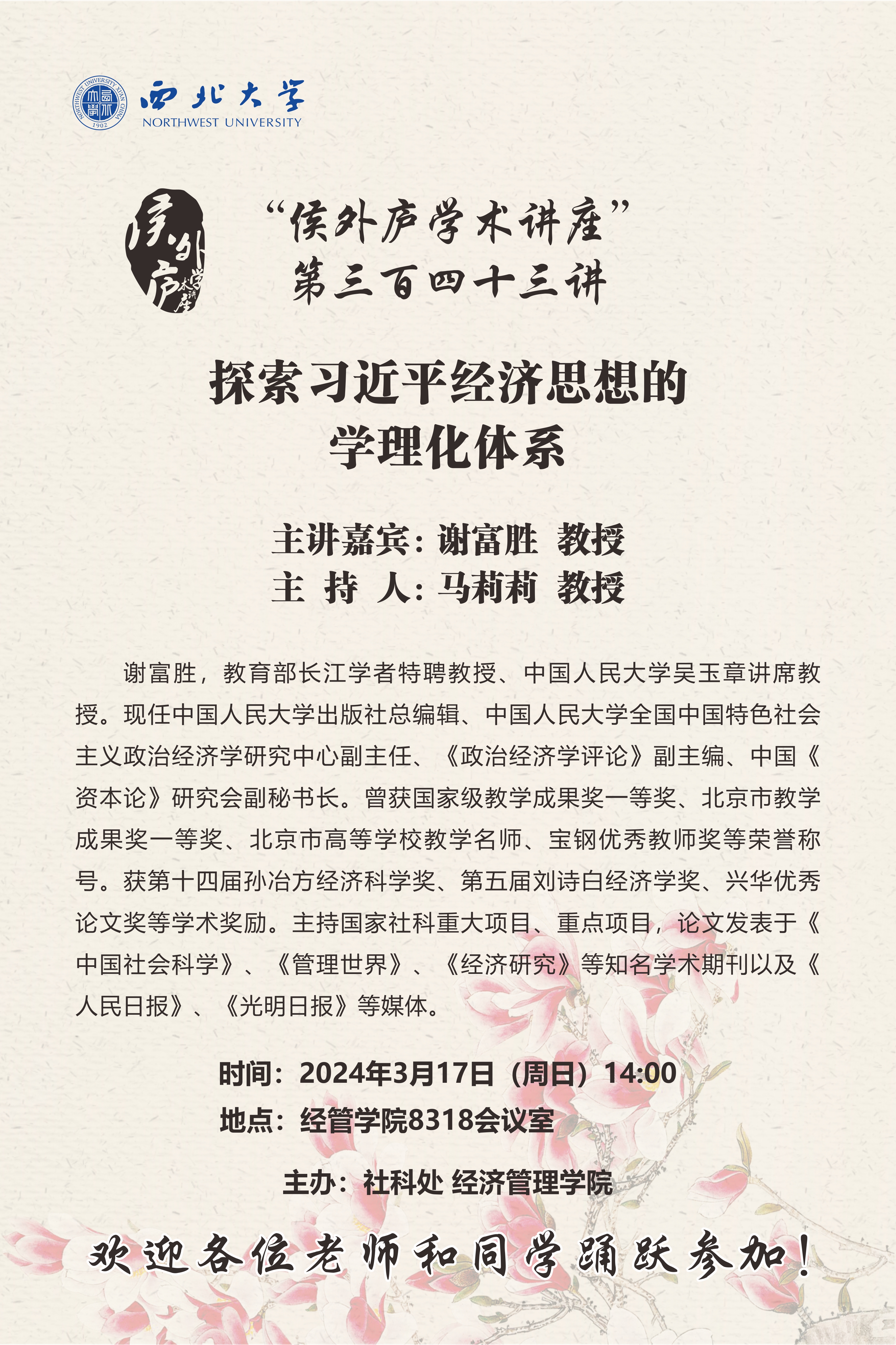 侯外庐学术讲座第三百四十三讲:探索习近平经济思想的学理化体系