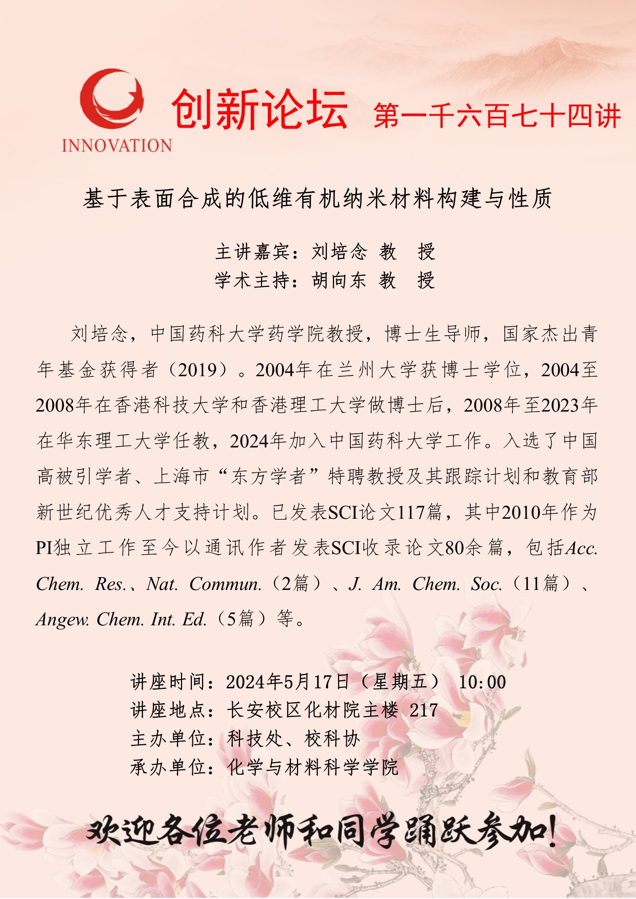 刘培念 教授 欧冠官方网站创新论坛第一千六百七十四讲:基于表面合成的低维有机纳米材料构建与性质 讲座时间 2024年5月17日(星期五) 10:00 讲座地点 长安校区化材院主楼 217 讲座人介绍 刘培念 教授 讲座内容