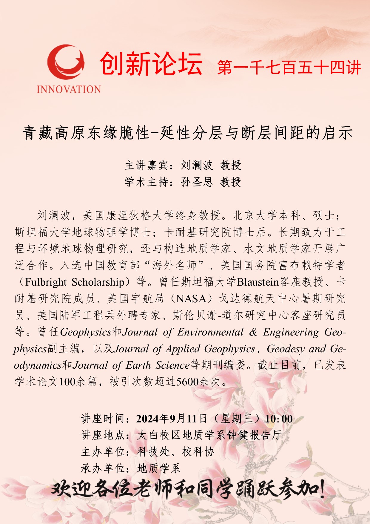 刘澜波 教授 欧冠官方网站创新论坛第一千七百五十四讲:青藏高原东缘脆性-延性分层与断层间距的启示 讲座时间 2024年9月11日(星期三)10:00 讲座地点 太白校区地质学系钟健报告厅 讲座人介绍 刘澜波 教授 讲座内容