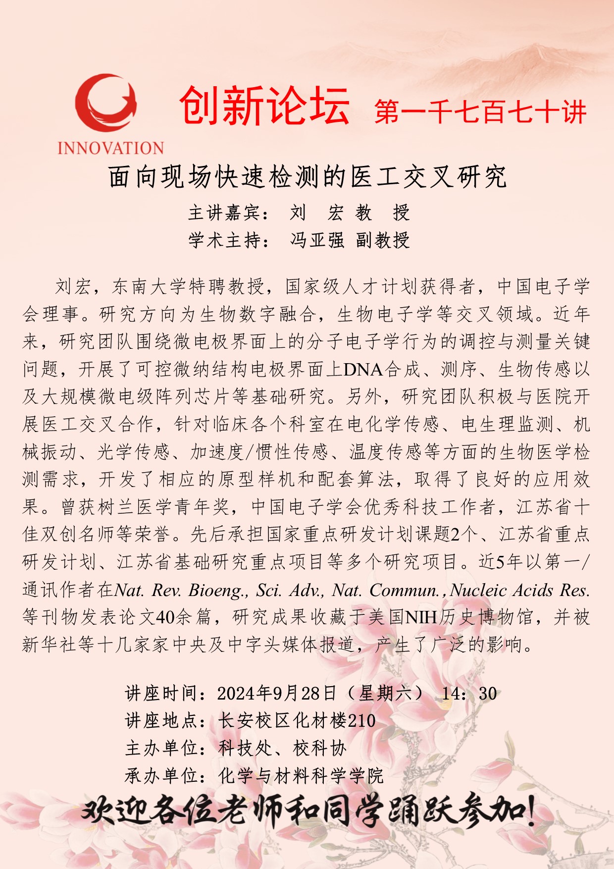 欧冠官方网站创新论坛第一千七百七十讲:面向现场快速检测的医工交叉研究