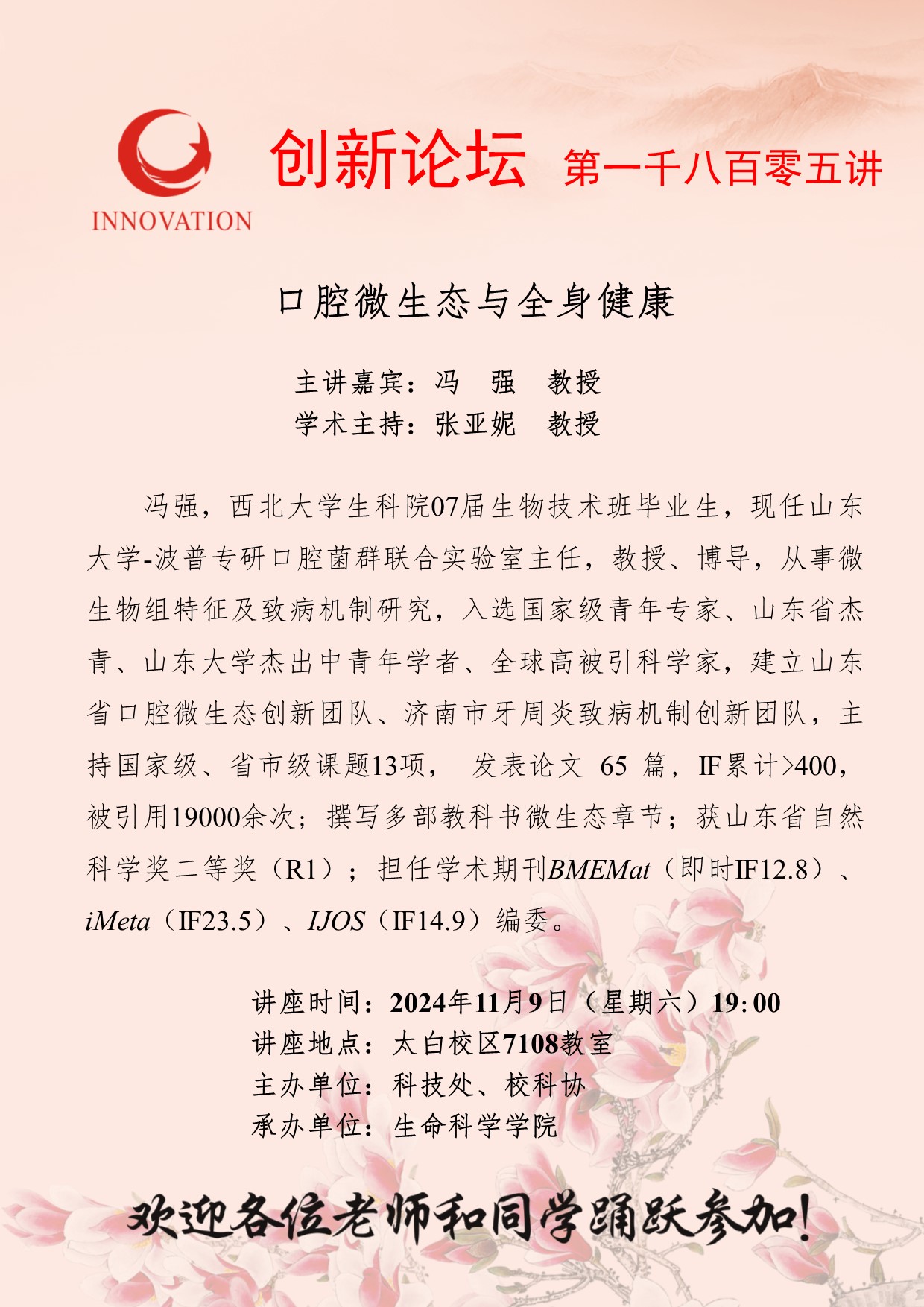 欧冠官方网站创新论坛第一千八百零五讲:口腔微生态与全身健康