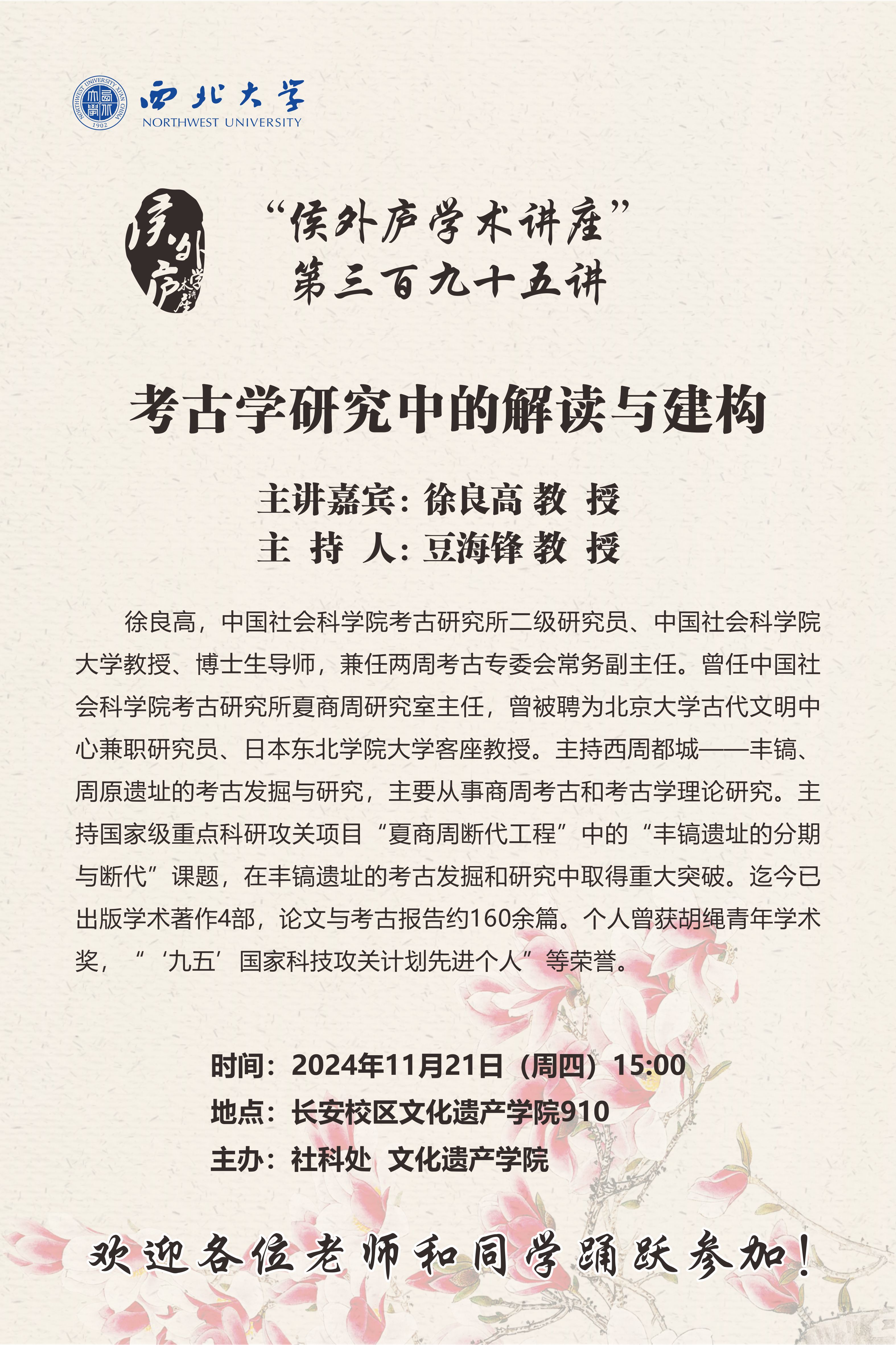 “侯外庐学术讲座”第三百九十五讲:考古学研究中的解读与建构