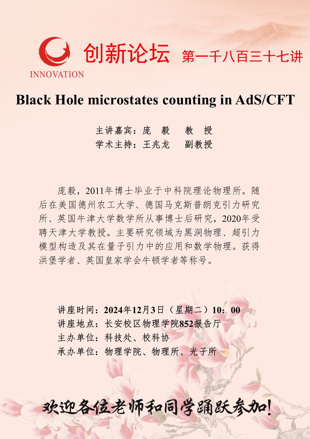 庞毅 教授 欧冠官方网站创新论坛第一千八百三十七讲:Black Hole microstates counting in AdS/CFT 讲座时间 2024年12月3日(星期二)10:00 讲座地点 长安校区物理学院852报告厅 讲座人介绍 庞毅 教授 讲座内容