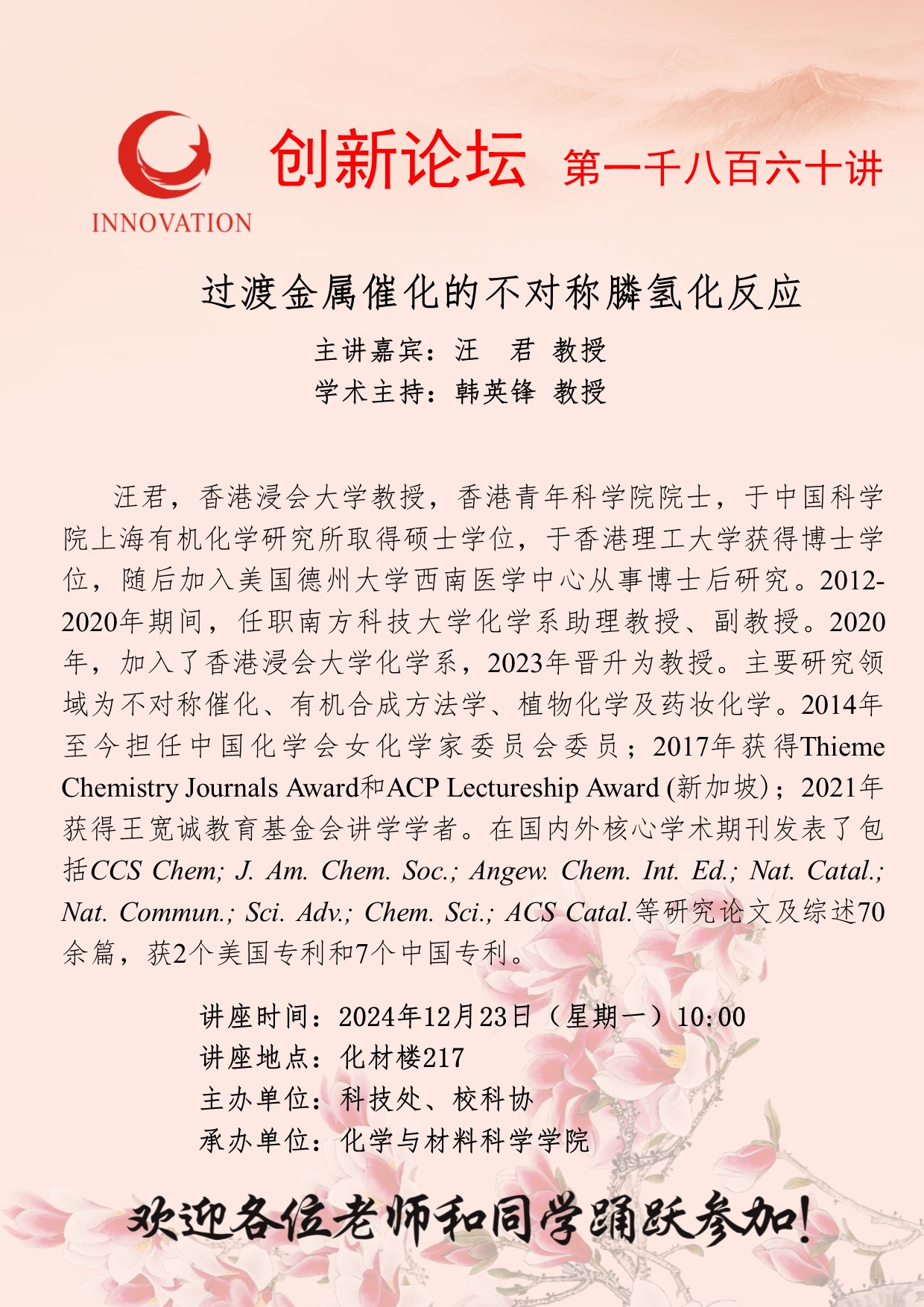 欧冠官方网站创新论坛第一千八百五十九讲:Steric-on-Demand Phosphine Ligands for Tackling Highly Steric-Congested Cross-Coupling Processes