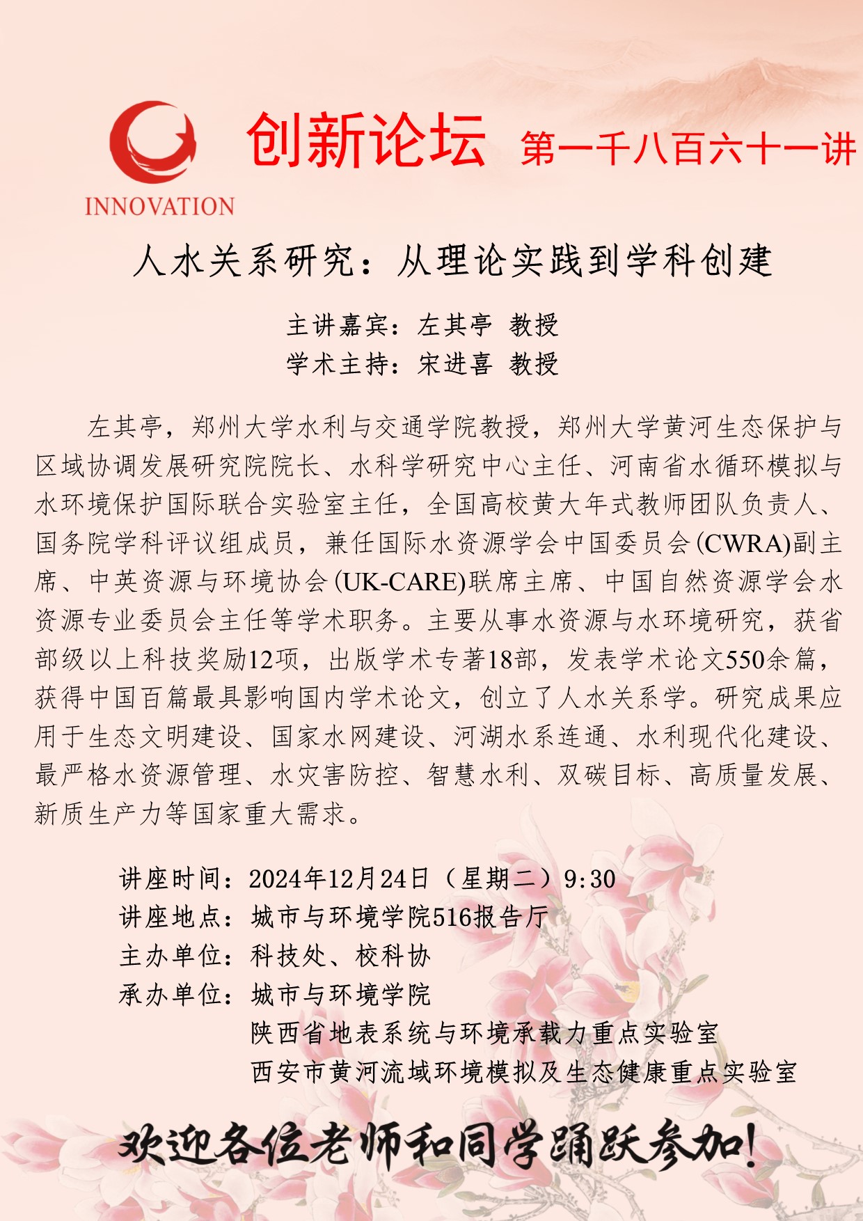 左其亭 教授 欧冠官方网站创新论坛第一千八百六十一讲:人水关系研究:从理论实践到学科创建 讲座时间 2024年12月24日(星期二)9:30 讲座地点 城市与环境学院516报告厅 讲座人介绍 左其亭 教授 讲座内容