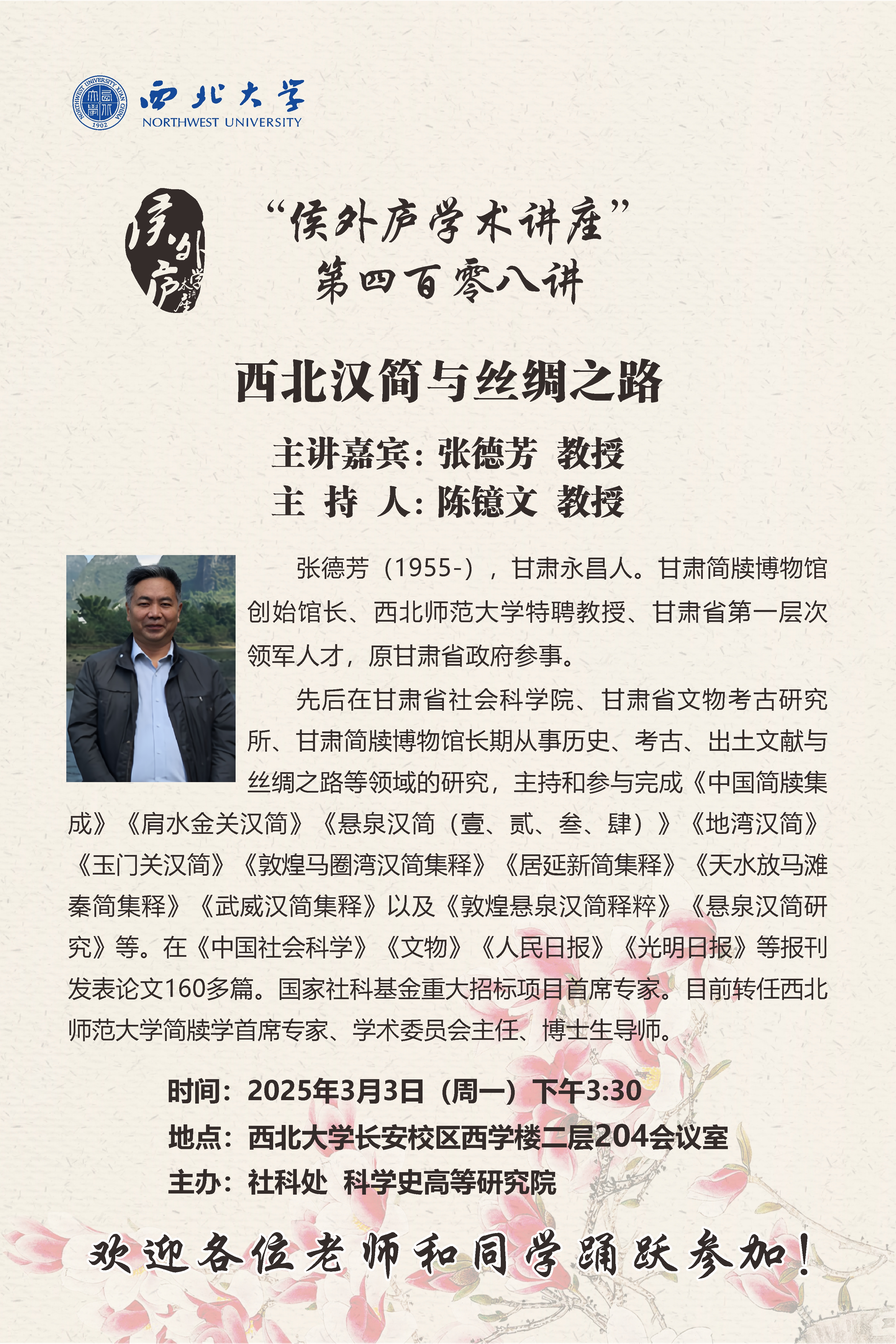 “侯外庐学术讲座”第四百零八讲:西北汉简与丝绸之路