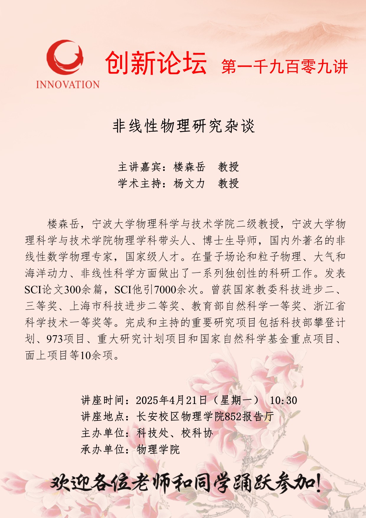 欧冠官方网站创新论坛第一千九百零九讲:非线性物理研究杂谈