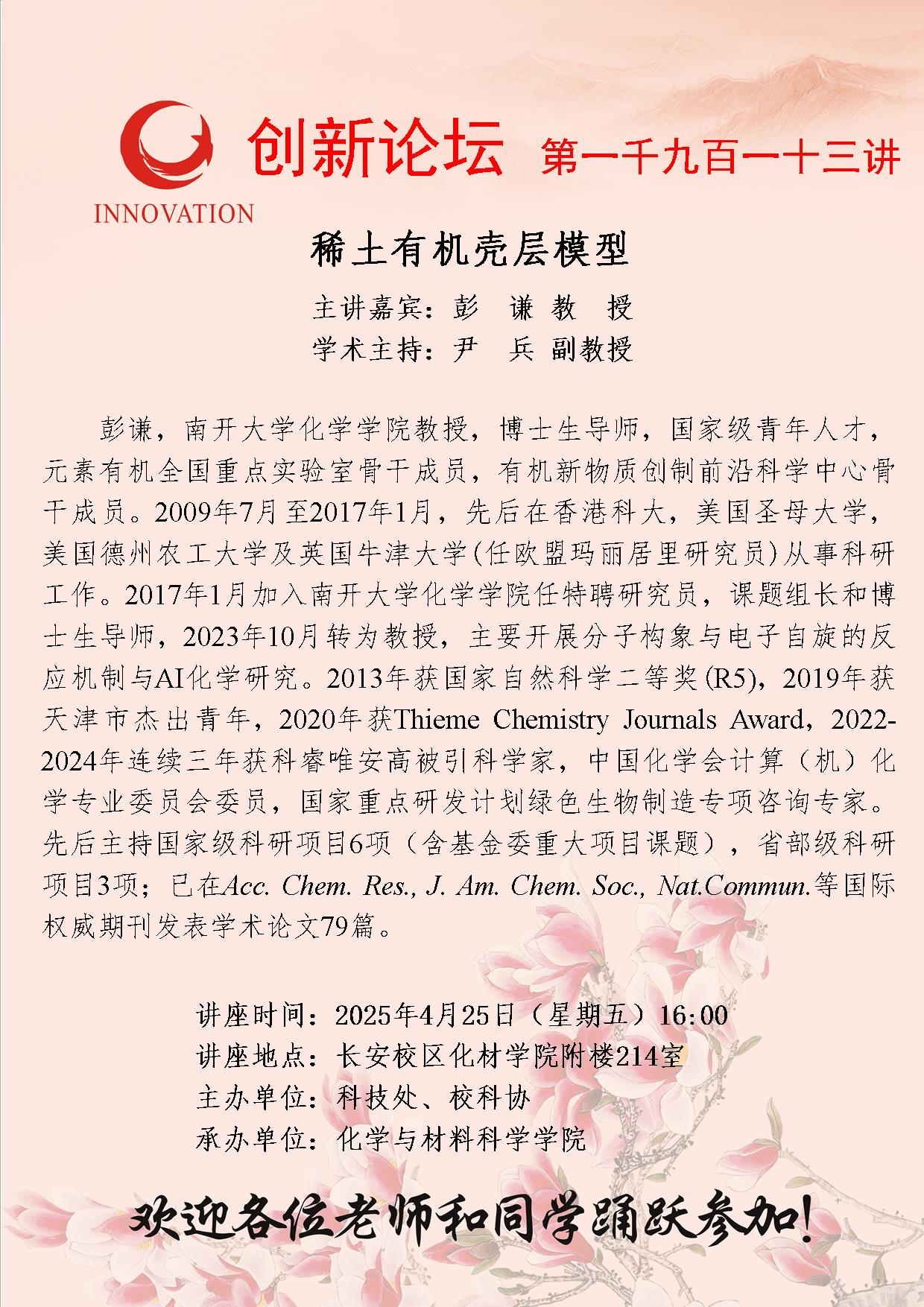 欧冠官方网站创新论坛第一千九百一十三讲:稀土有机壳层模型