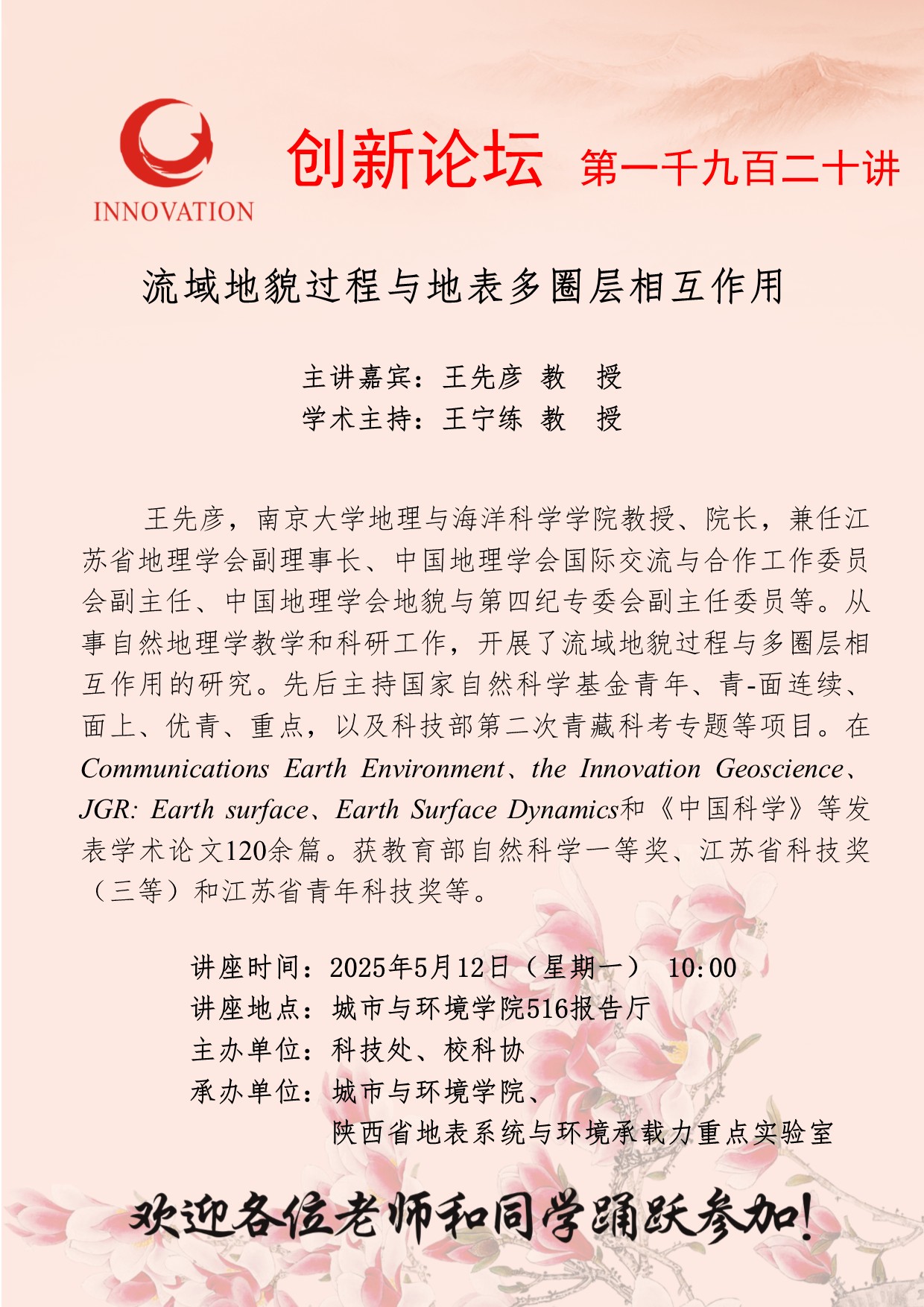 王先彦 教授 欧冠官方网站创新论坛第一千九百二十讲:流域地貌过程与地表多圈层相互作用 讲座时间 2025年5月12日(星期一) 10:00 讲座地点 城市与环境学院516报告厅 讲座人介绍 王先彦 教授 讲座内容
