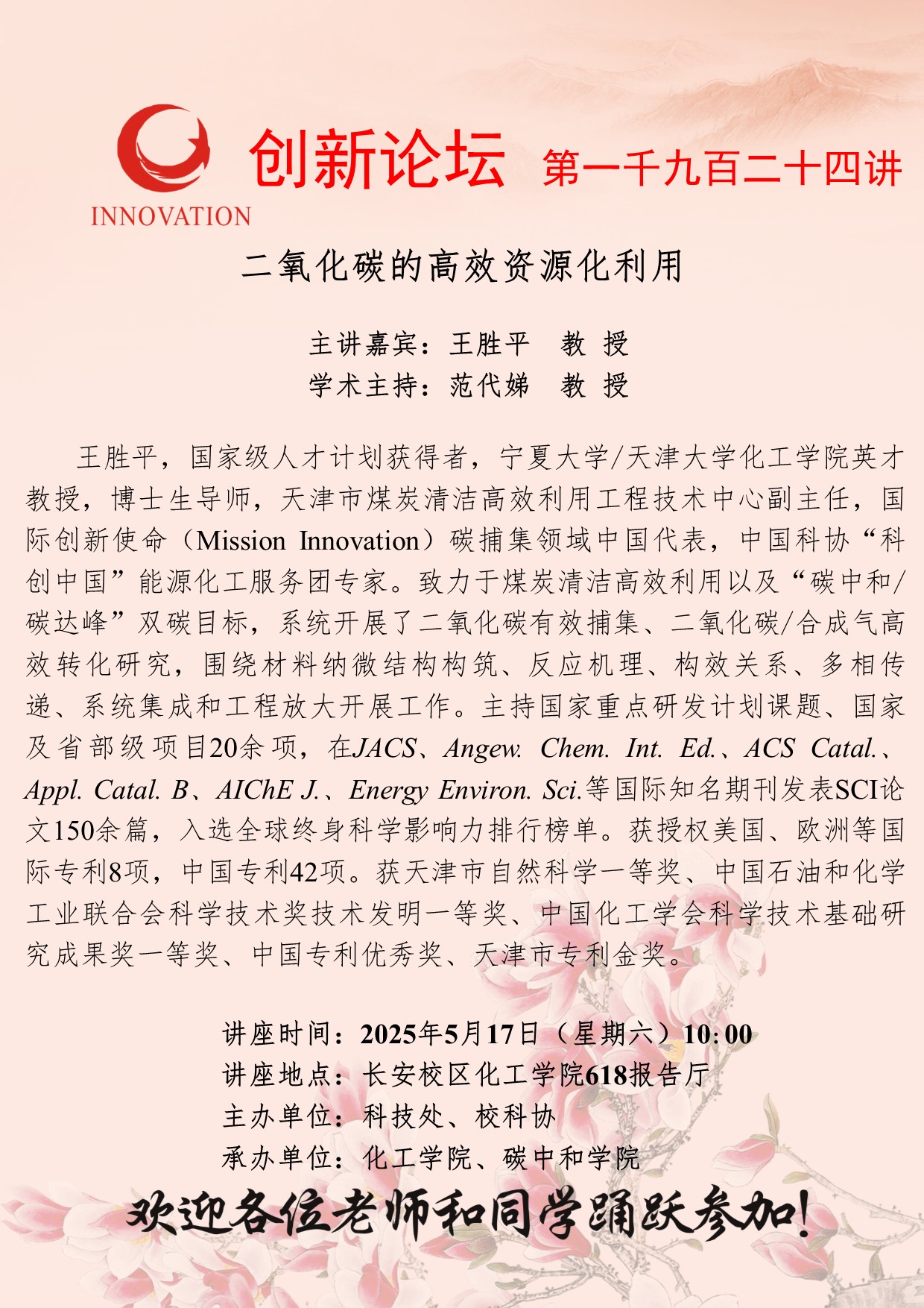 王胜平 教授 欧冠官方网站创新论坛第一千九百二十四讲:二氧化碳的高效资源化利用 讲座时间 2025年5月17日(星期六)10:00 讲座地点 长安校区化工学院618报告厅 讲座人介绍 王胜平 教授 讲座内容
