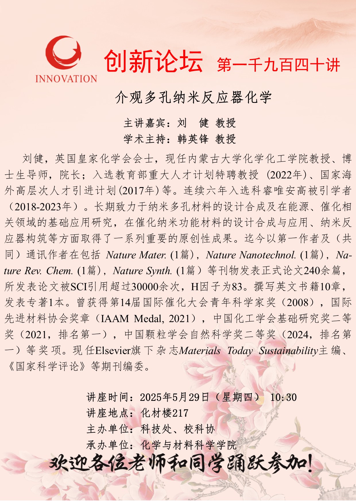 欧冠官方网站创新论坛第一千九百四十讲:介观多孔纳米反应器化学