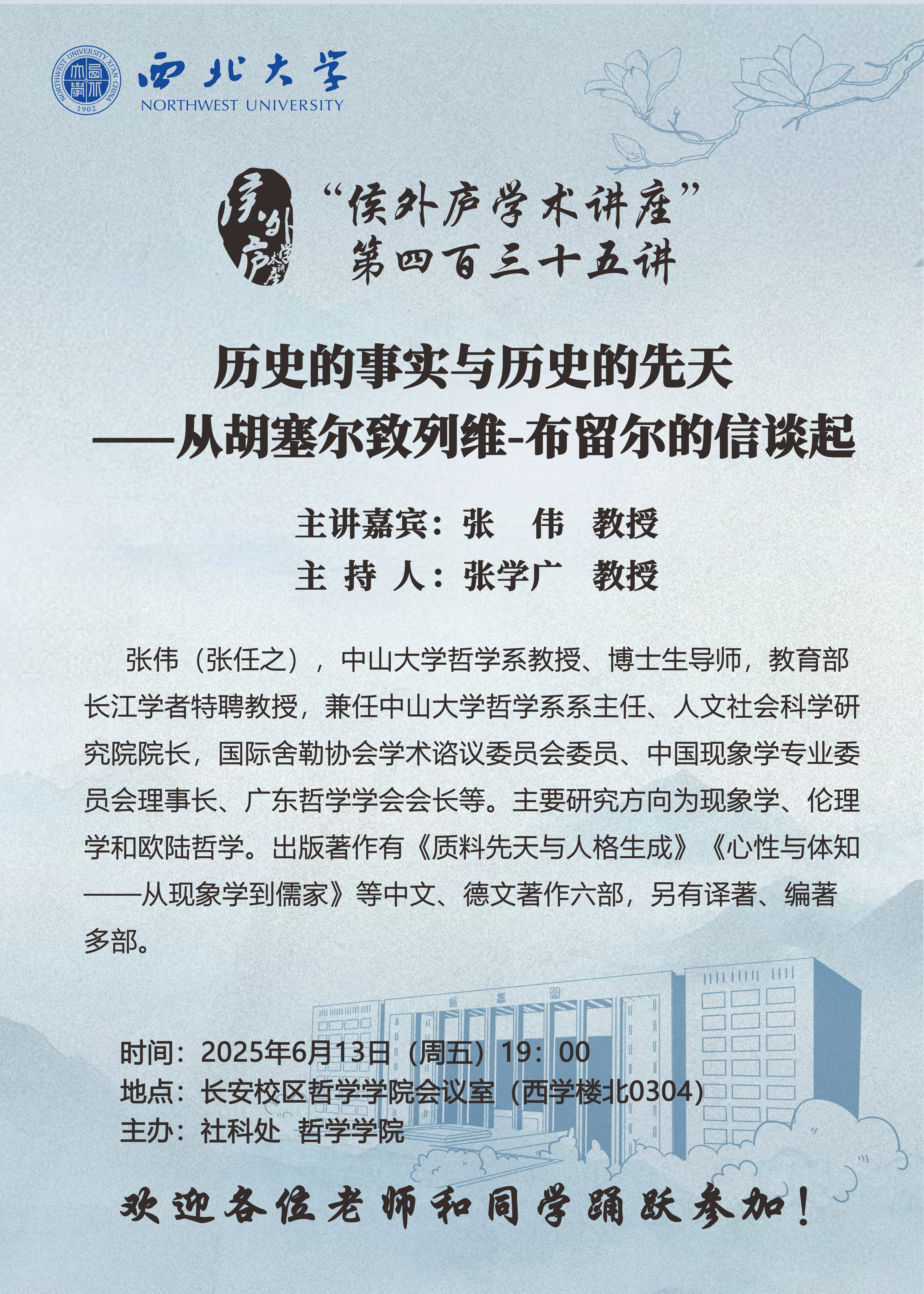 “侯外庐学术讲座”第四百三十五讲:历史的事实与历史的先天--从胡塞尔致列维-布留尔的信谈起