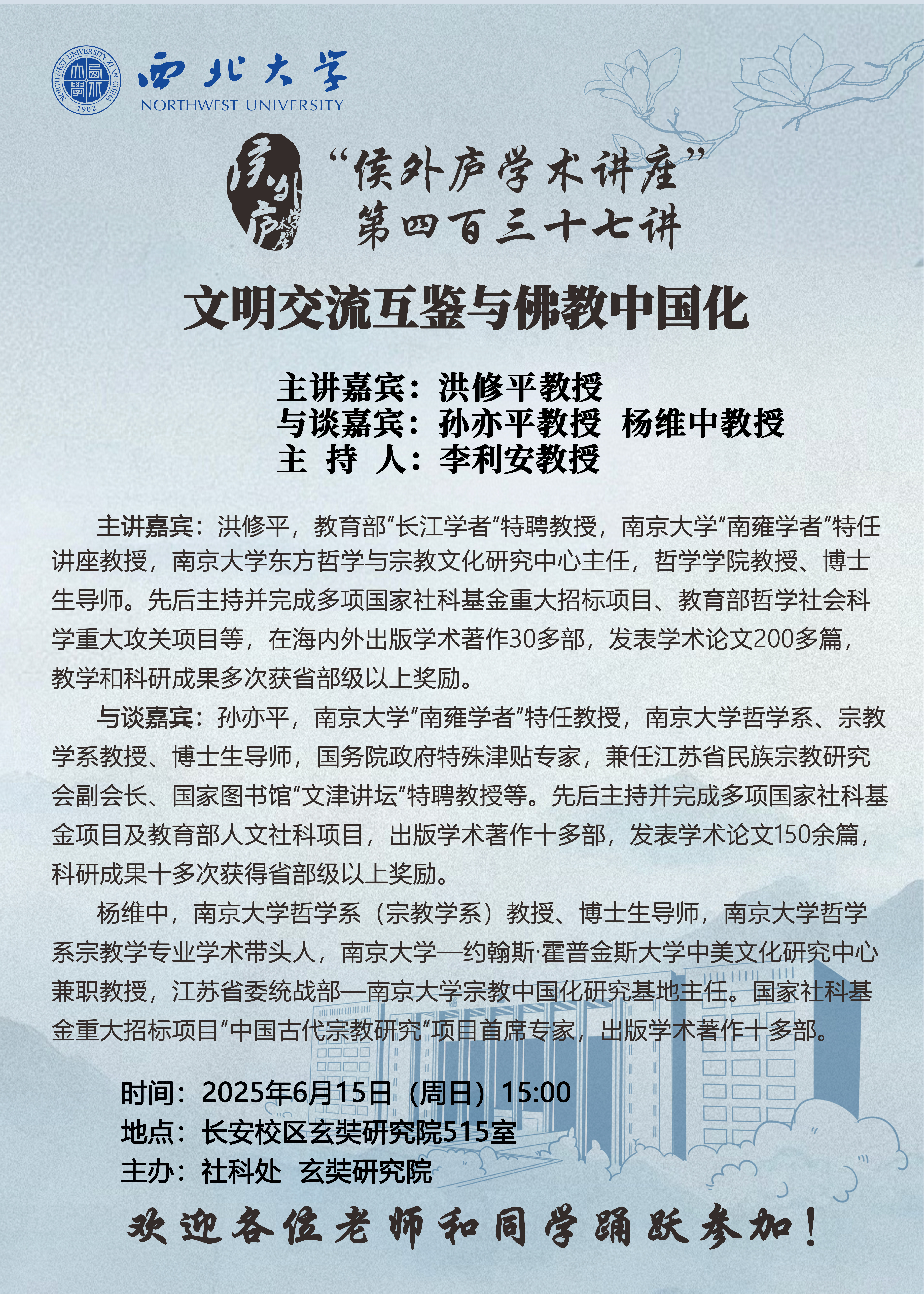 “侯外庐学术讲座”第四百三十六讲:作为关系建构论的现象学:一个跨文化的审视