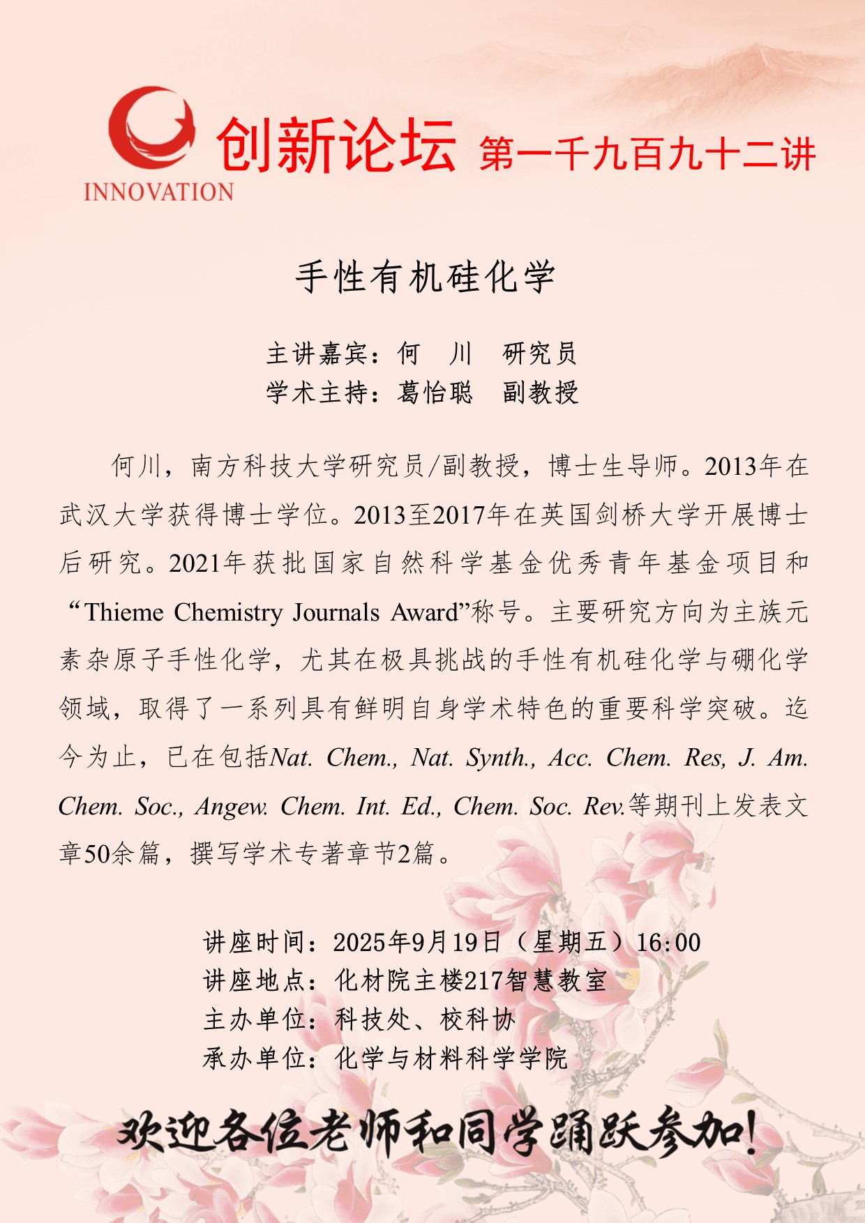 欧冠官方网站创新论坛第一千九百九十三讲:Asymmetric Catalysis with Frustrated Lewis Pairs