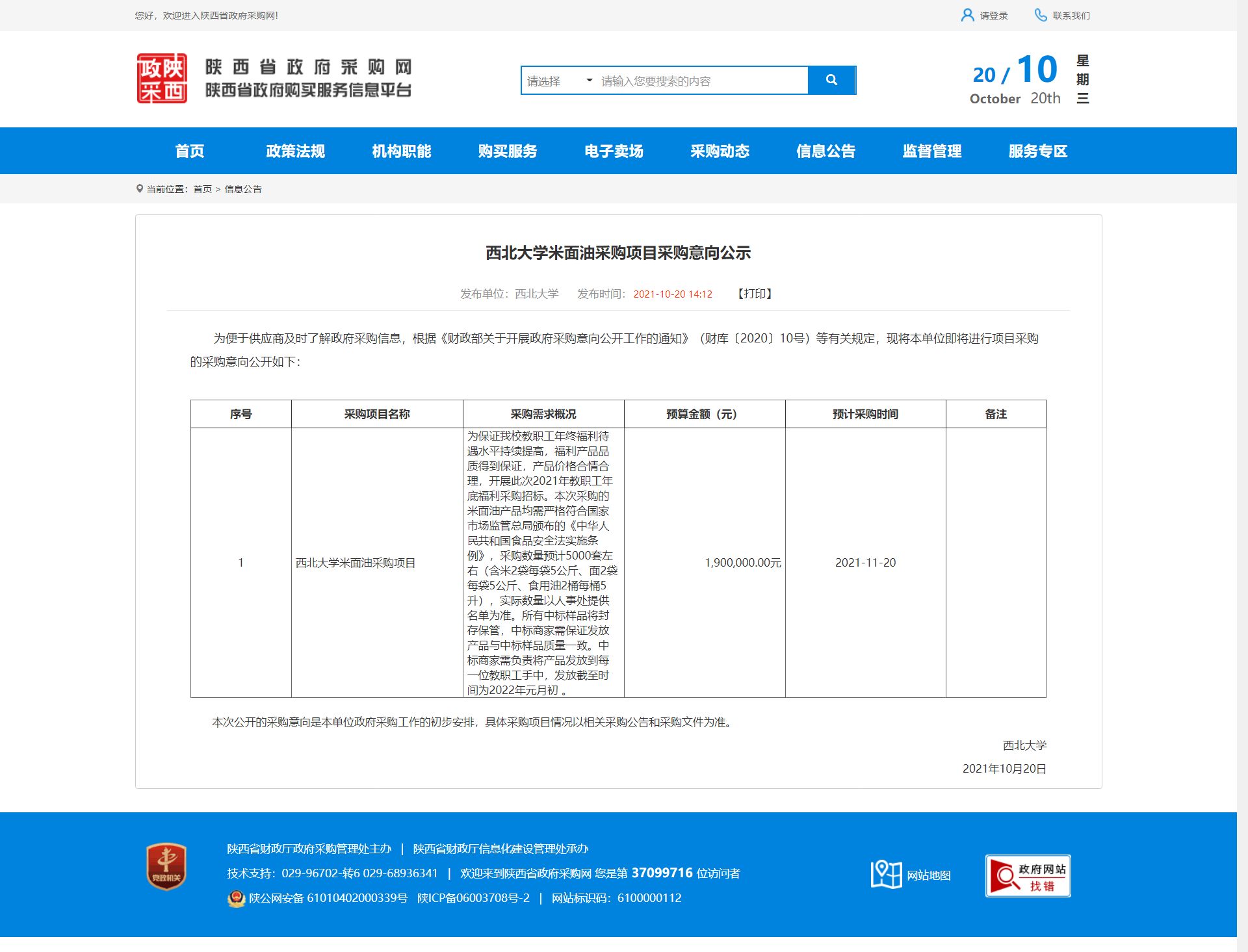 欧冠官方网站米面油采购项目采购意向公示 作者: 编辑:采购与招标办公室 时间:2021-10-20 原公告地址:http://www.ccgp-shaanxi.gov.cn/notice/noticeDetail.do?noticeguid=8a85be337c20d0b4017c9c4e47dd0a64