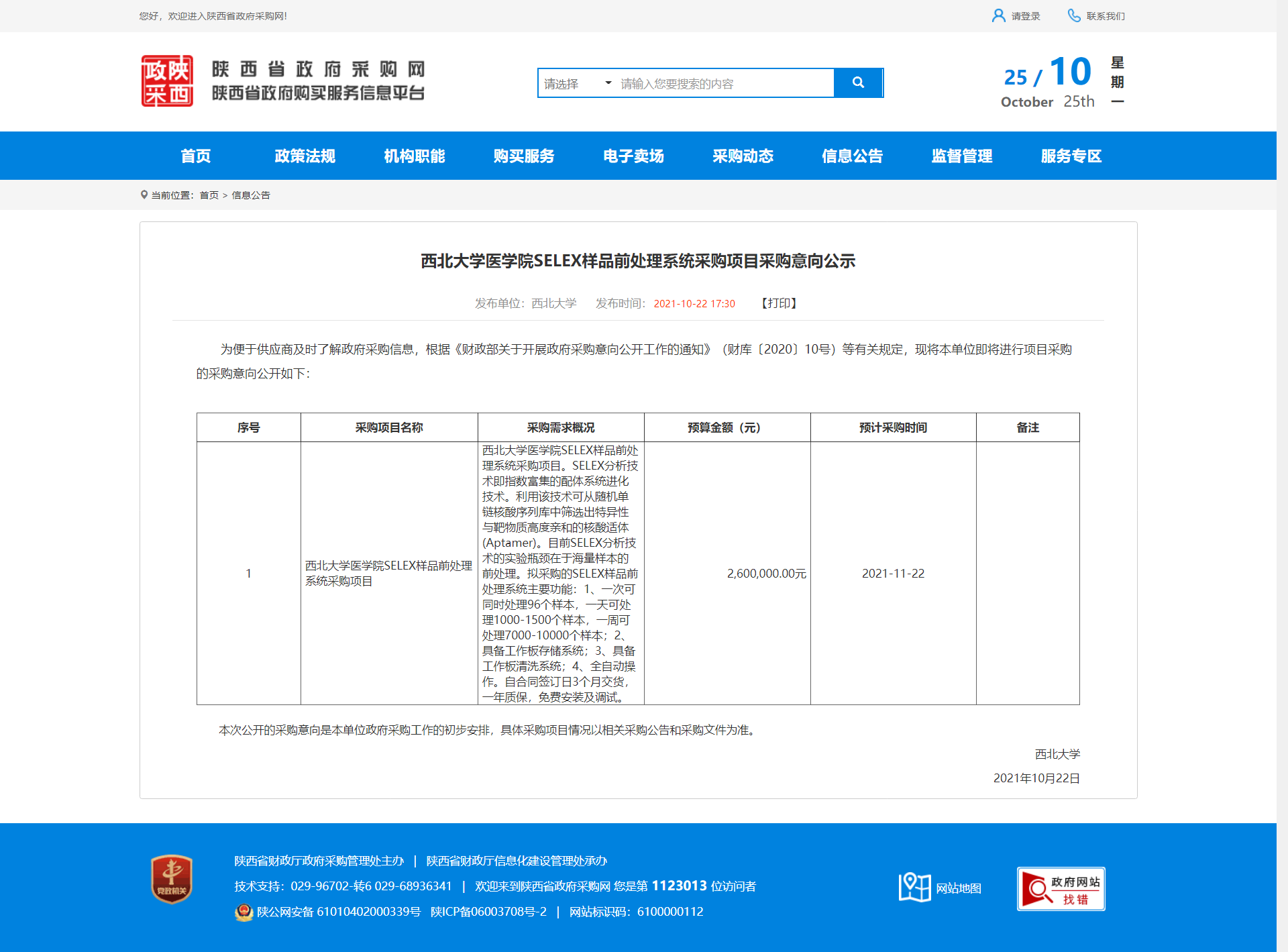 欧冠官方网站医学院SELEX样品前处理系统采购项目采购意向公示 作者: 编辑:薛利娟 时间:2021-10-25 原公告地址:http://www.ccgp-shaanxi.gov.cn/notice/noticeDetail.do?noticeguid=8a85be337c20d0b4017ca7551f1b7c5b