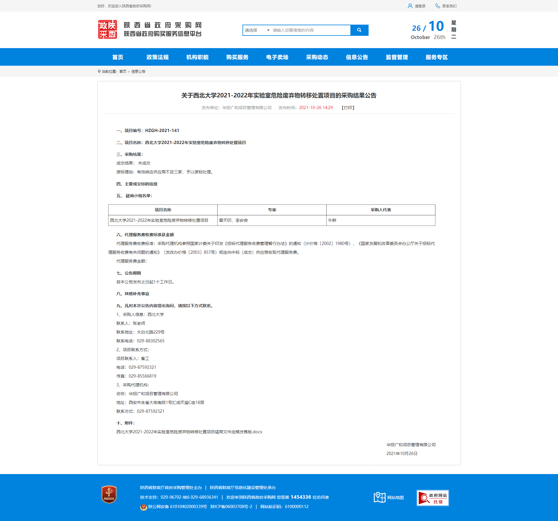 关于欧冠官方网站2021-2022年实验室危险废弃物转移处置项目的采购结果公告
