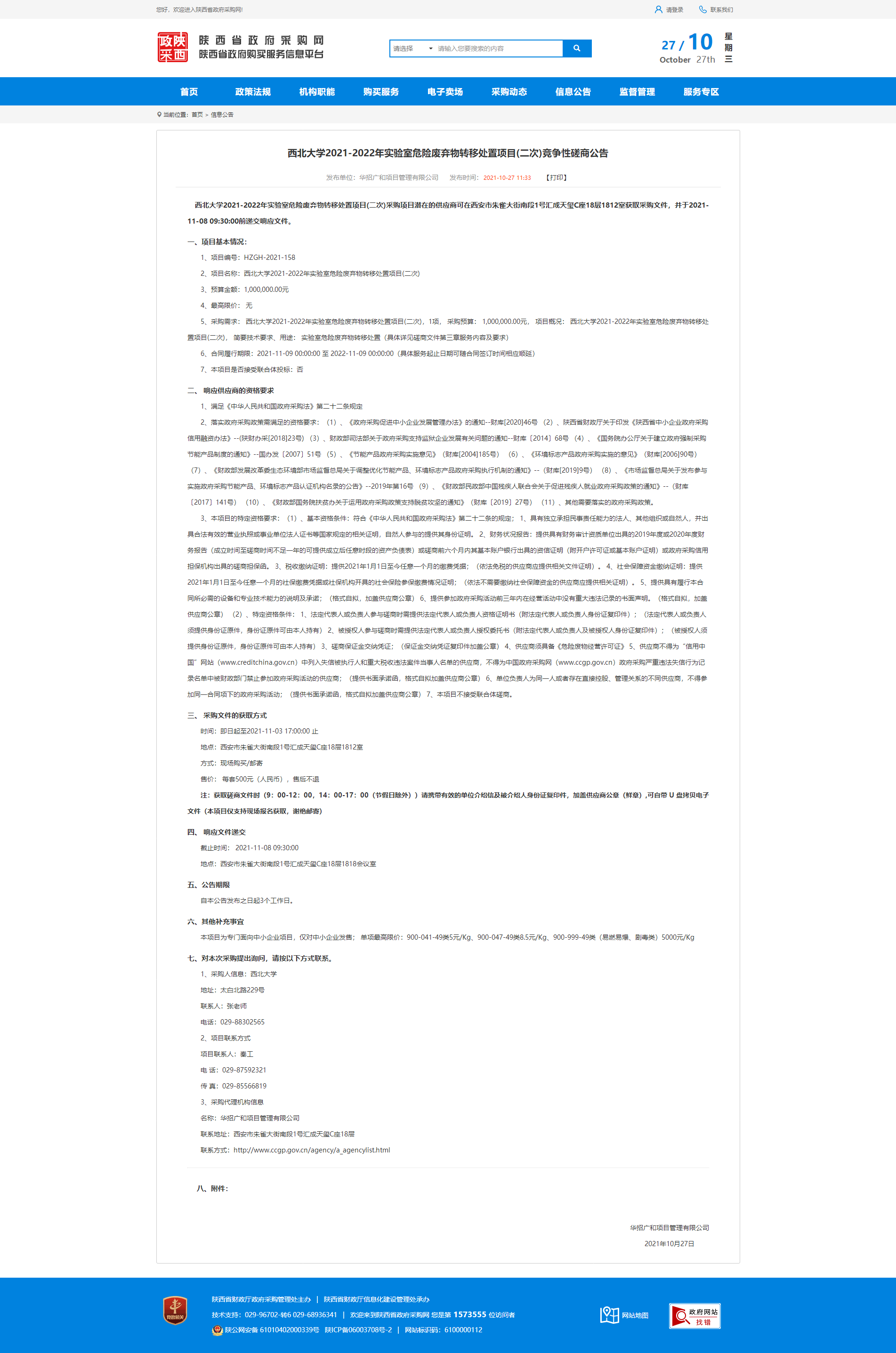 欧冠官方网站2021-2022年实验室危险废弃物转移处置项目(二次)竞争性磋商公告