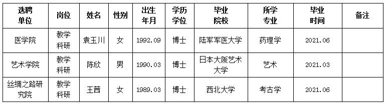 经用人单位推荐,人力资源部审查,学校教学督导及院系相关专家考核,欧冠拟确定下列人员来校工作。本着公平、公正、公开的原则,现将本次拟选聘人员基本情况公示如下: