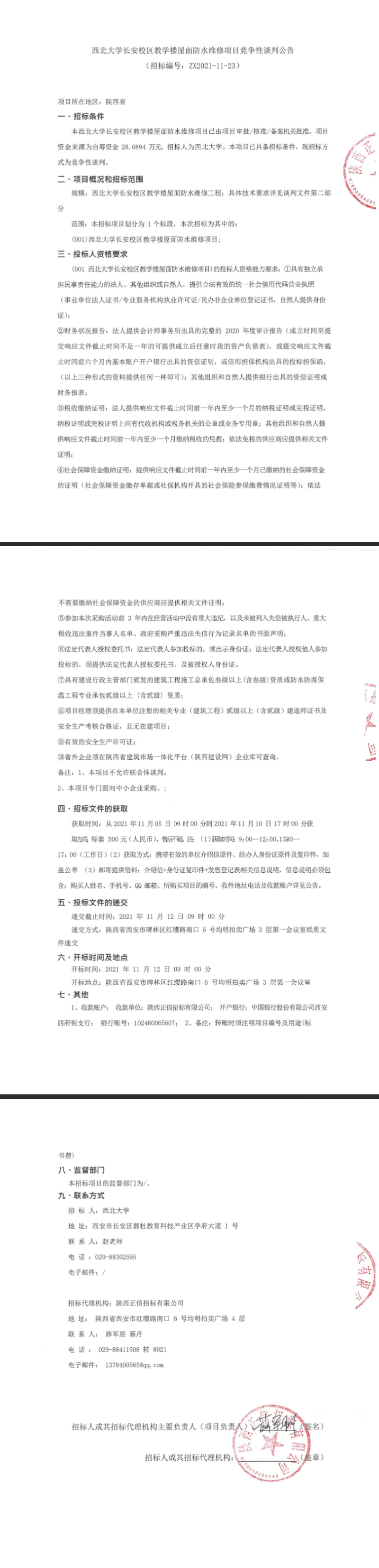 欧冠官方网站长安校区教学楼屋面防水维修项目竞争性谈判公告