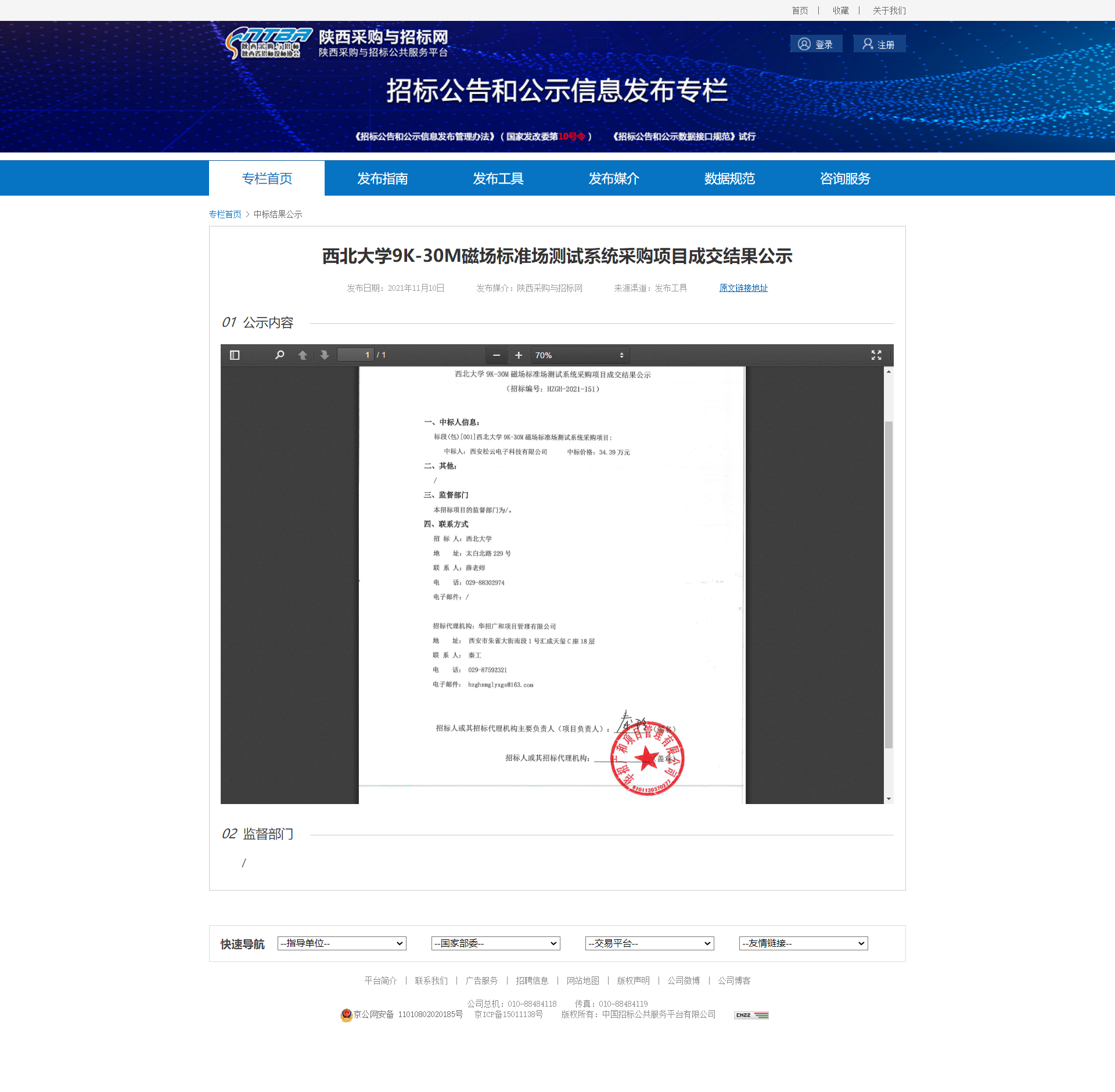 欧冠官方网站9K-30M磁场标准场测试系统采购项目成交结果公示 作者: 编辑:薛利娟 时间:2021-11-11 原公告网址:http://bulletin.sntba.com/resultBulletin/2021-11-10/362788.html