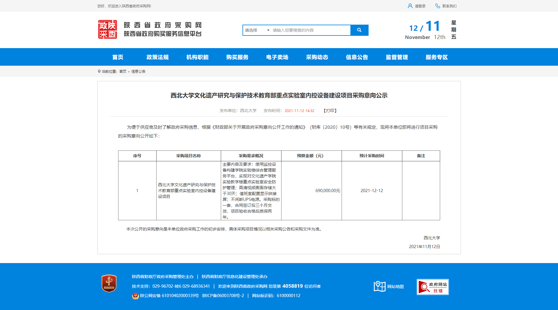 欧冠官方网站文化遗产研究与保护技术教育部重点实验室内控设备建设项目采购意向公示