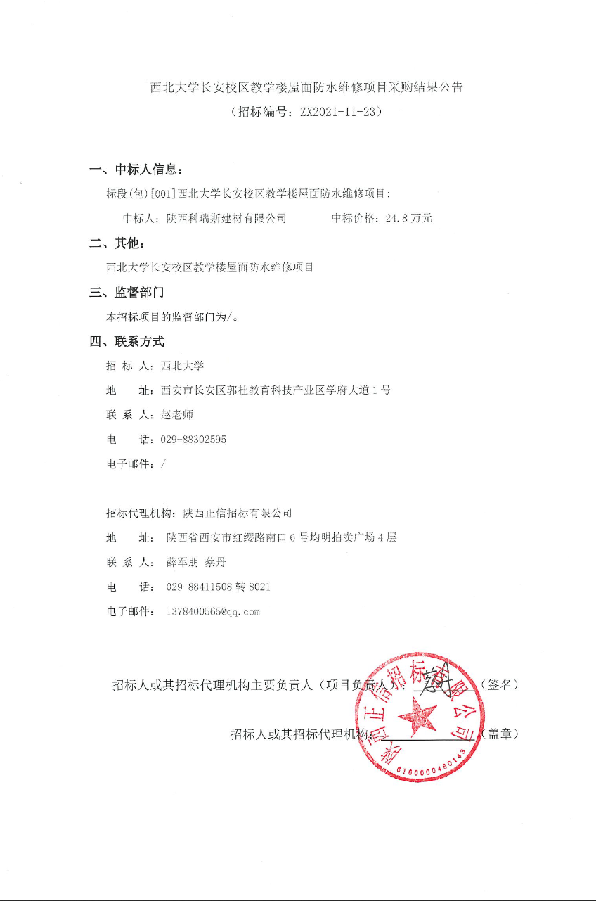 欧冠官方网站长安校区教学楼屋面防水维修项目采购结果公告
