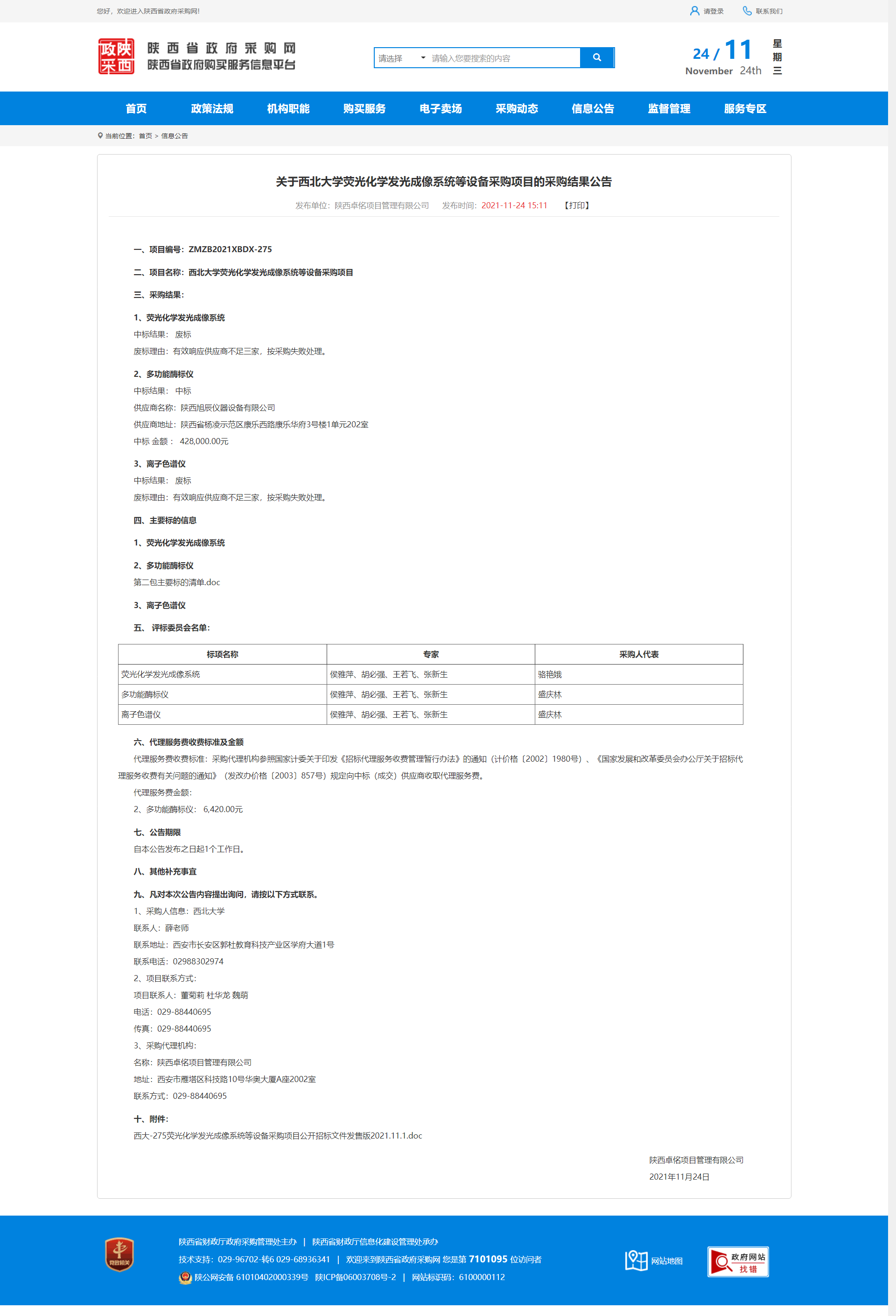 关于欧冠官方网站荧光化学发光成像系统等设备采购项目的采购结果公告 作者: 编辑:薛利娟 时间:2021-11-24 原公告网址:http://www.ccgp-shaanxi.gov.cn/notice/noticeDetail.do?noticeguid=8a85be347d2d6f8d017d50c64ee42710