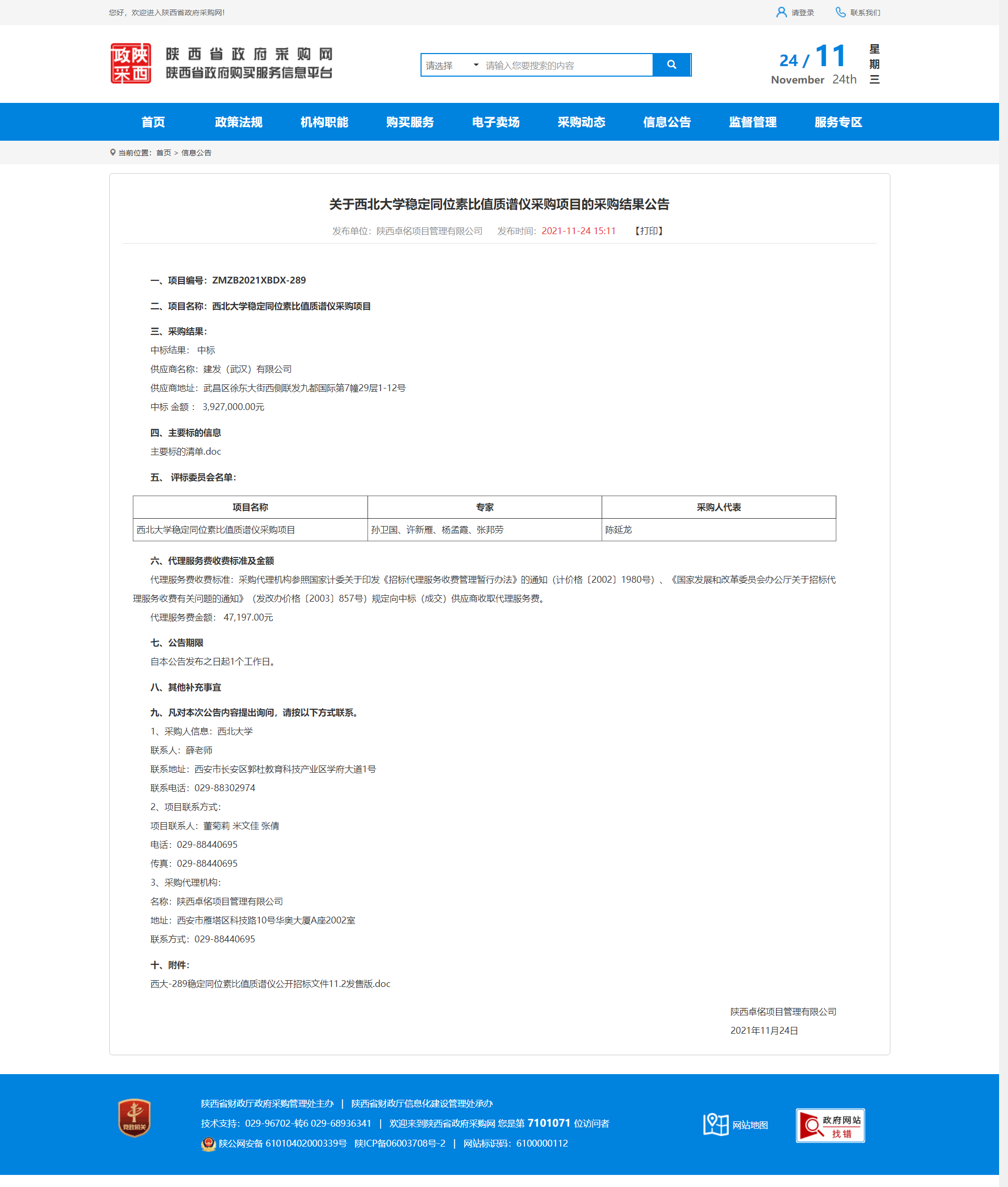 关于欧冠官方网站稳定同位素比值质谱仪采购项目的采购结果公告 作者: 编辑:薛利娟 时间:2021-11-24 原公告网址:http://www.ccgp-shaanxi.gov.cn/notice/noticeDetail.do?noticeguid=8a85be347d2d6f8d017d50c513e326e6