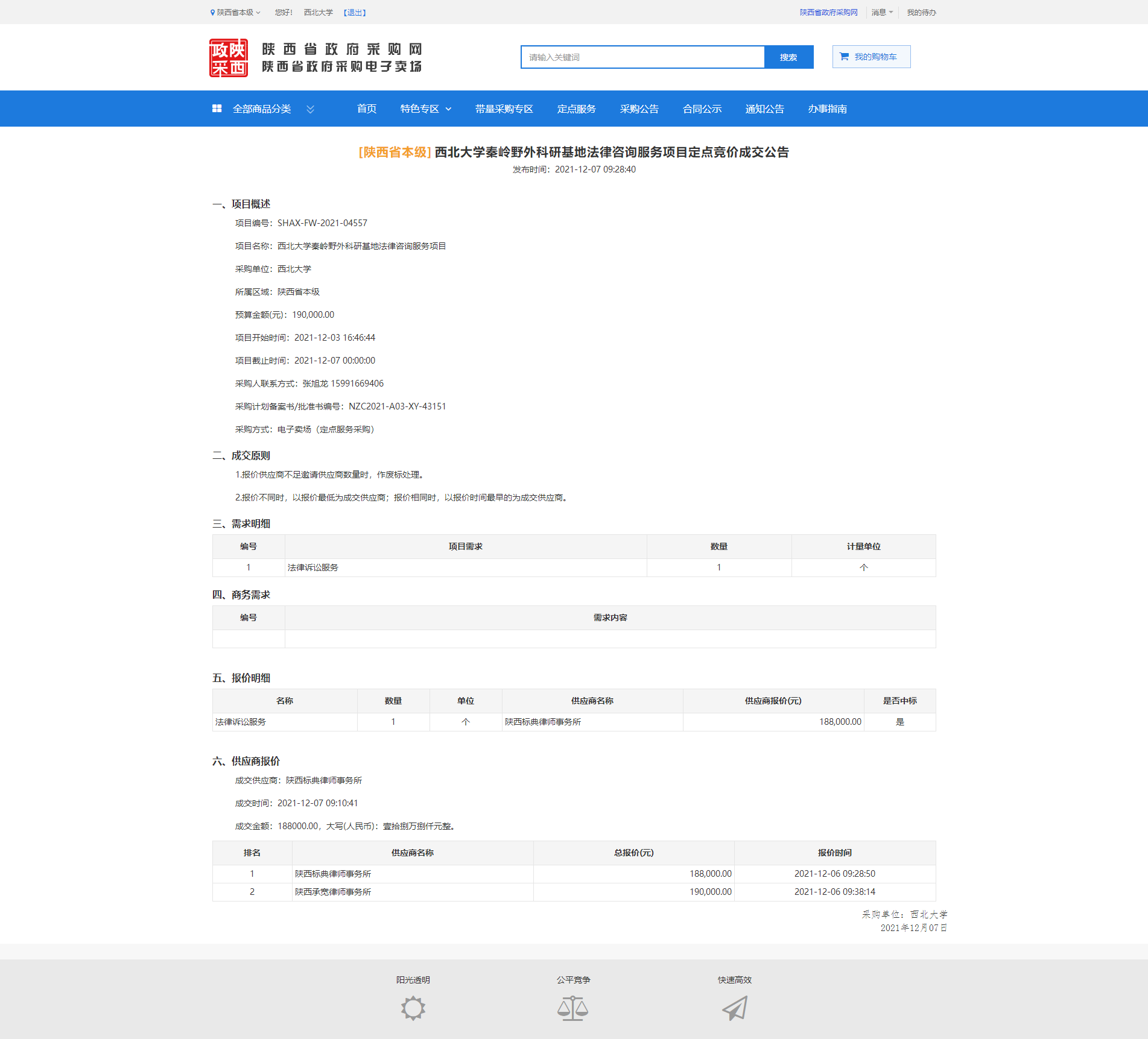 关于欧冠官方网站秦岭野外科研基地法律咨询服务项目定点竞价成交公告