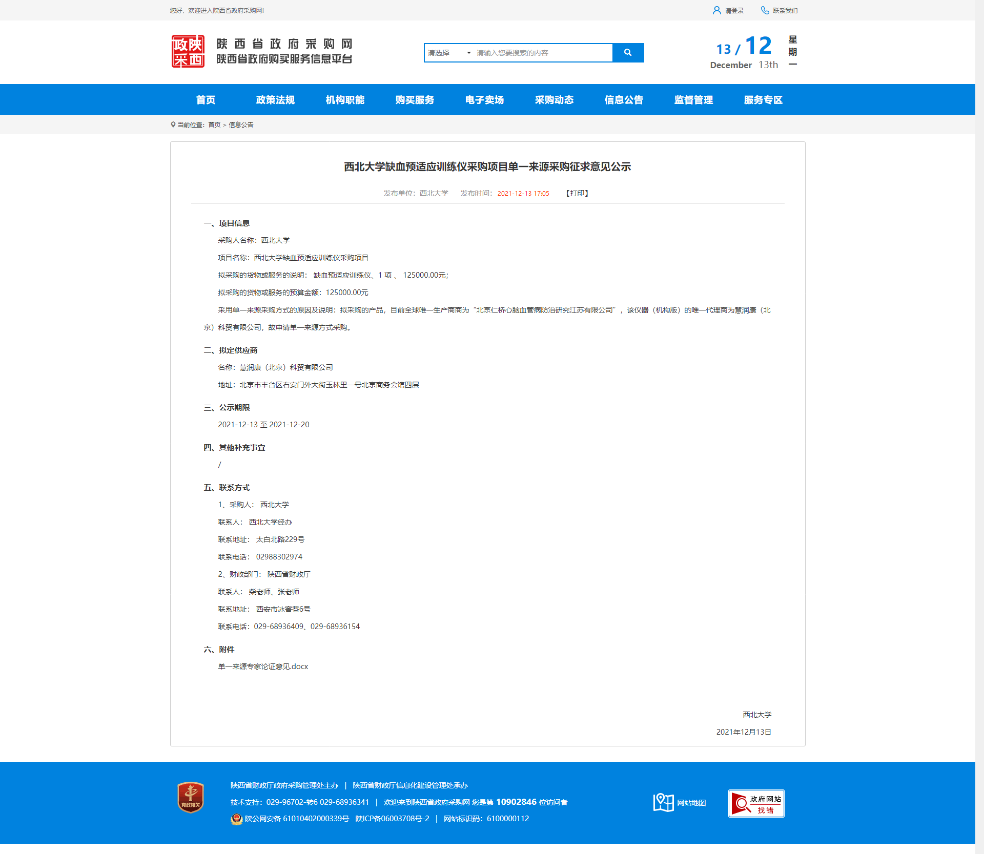 欧冠官方网站缺血预适应训练仪采购项目单一来源采购征求意见公示 作者: 编辑:薛利娟 时间:2021-12-13 原公告链接:http://www.ccgp-shaanxi.gov.cn/notice/noticeDetail.do?noticeguid=8a85be337dace9ea017db302988240e3
