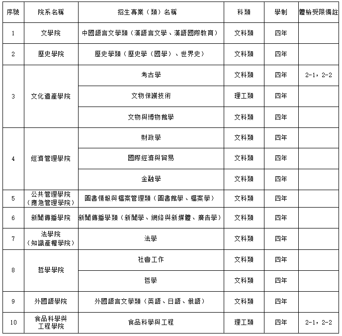 (2)體檢受限標誌代碼說明:2-1色弱;2-2色盲,該專業不招收此類考生。