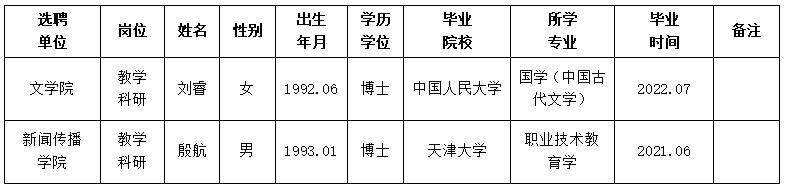 经用人单位推荐,人力资源部审查,学校教学督导及院系相关专家考核,欧冠拟确定下列人员来校工作。本着公平、公正、公开的原则,现将本次拟选聘人员基本情况公示如下: