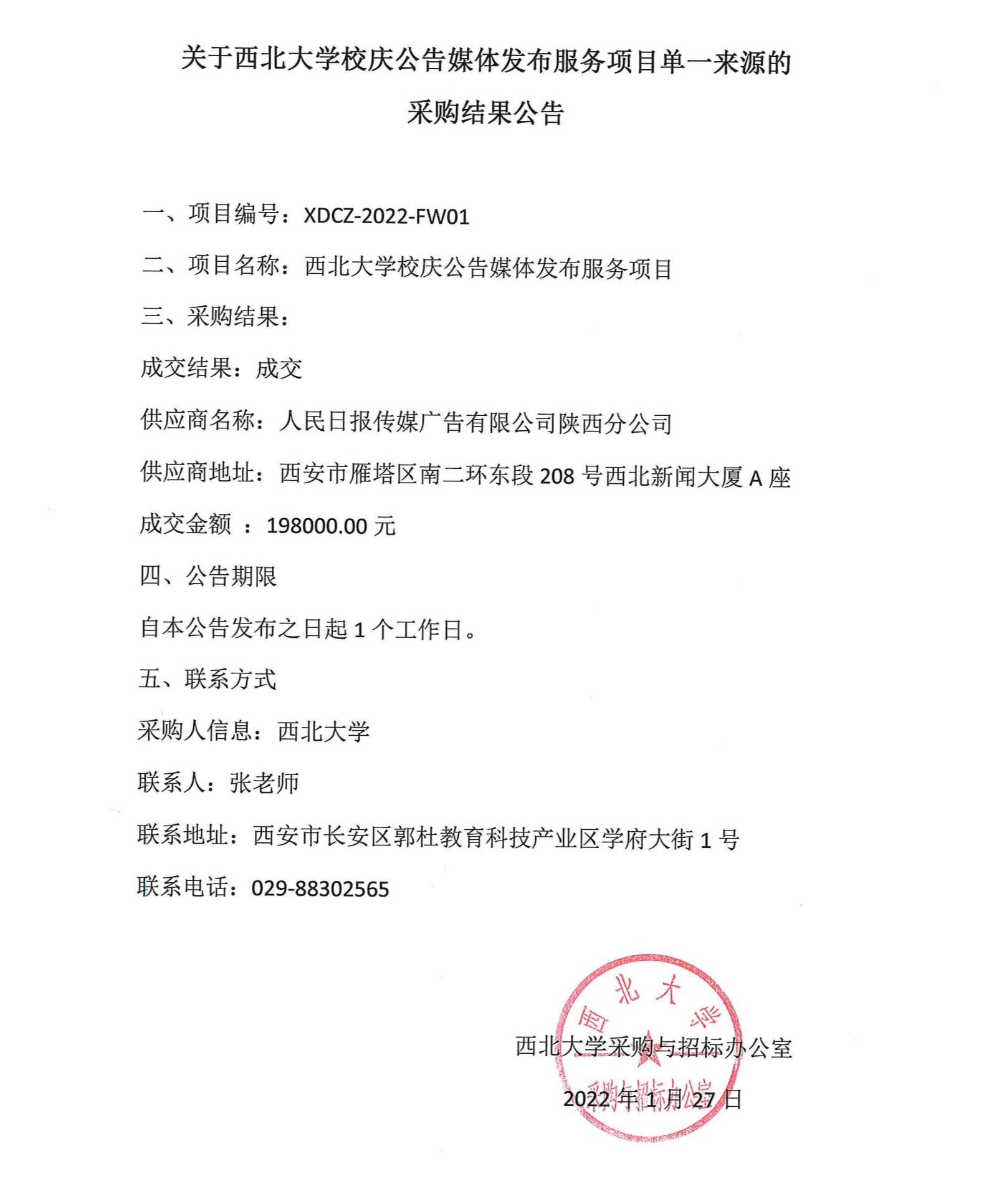 关于欧冠官方网站校庆公告媒体发布服务项目单一来源的采购结果公告