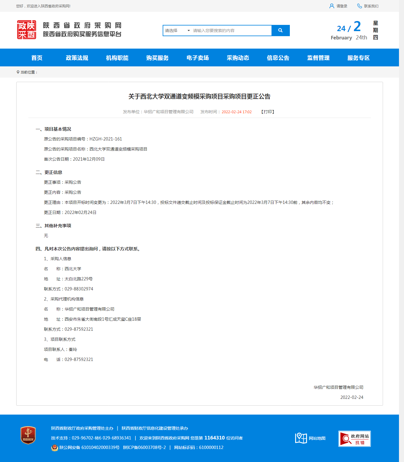 关于欧冠官方网站双通道变频模采购项目采购项目更正公告 作者: 编辑:薛利娟 时间:2022-02-24 原公告链接:http://www.ccgp-shaanxi.gov.cn/notice/noticeDetail.do?noticeguid=8a85be337ee79f03017f2af56c9d4ca1