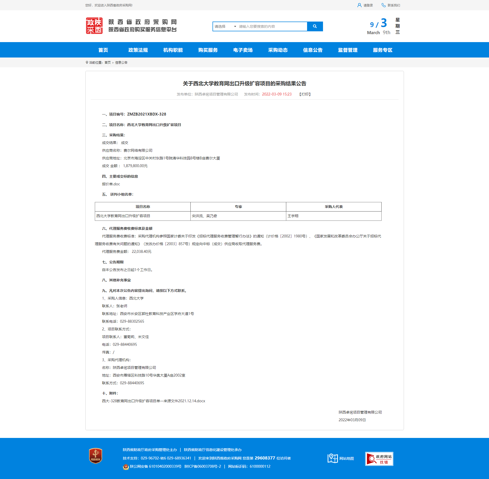 关于欧冠官方网站教育网出口升级扩容项目的采购结果公告